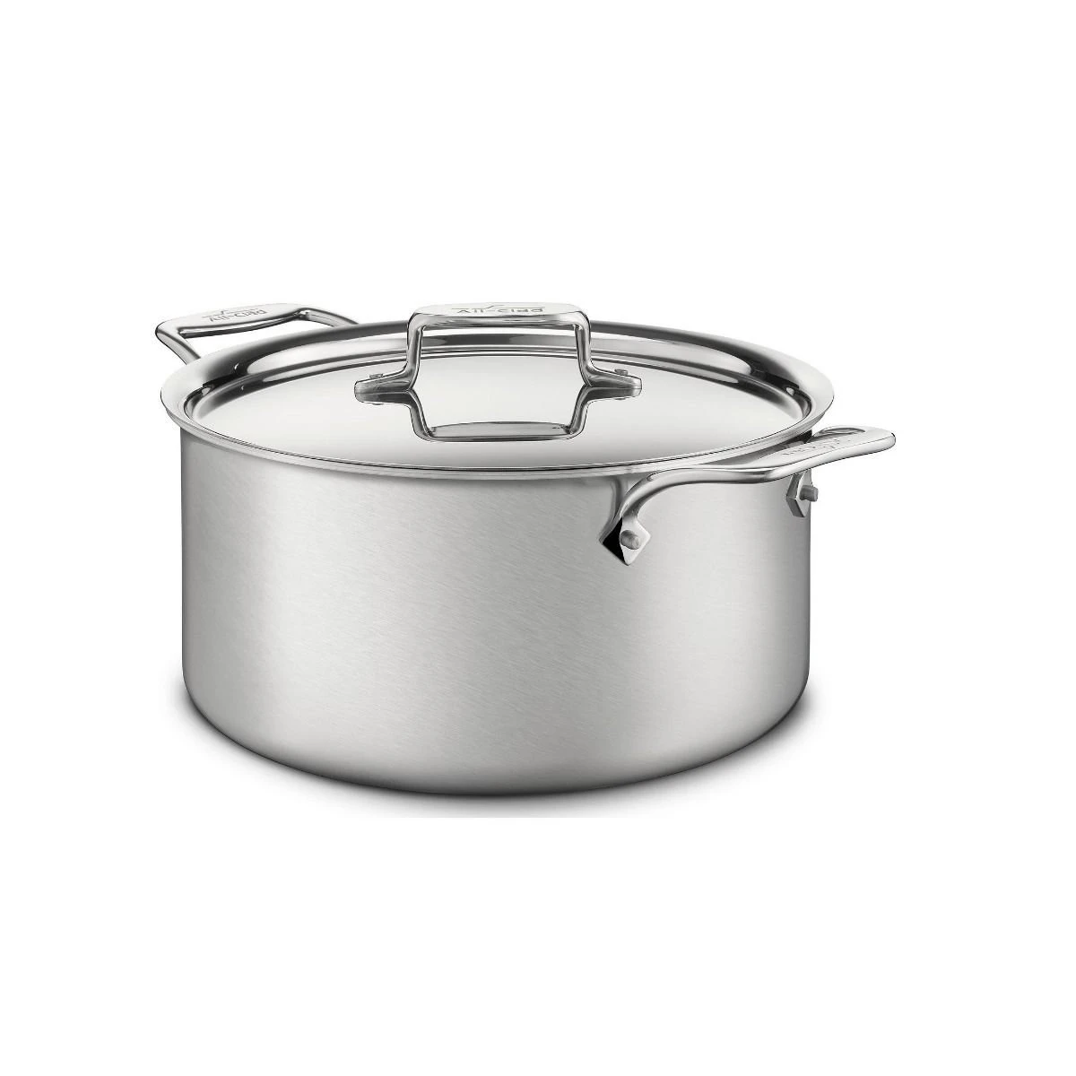 The All-Clad BD005710 is made from 5 layers of aluminum & stainless steel with magnetic brushed steel exteriors for beauty and compatibility with induction cooktops. Each piece in this cookware set has a high-quality starburst finish for a premium look. Includes 4 matching lids for covered cooking.