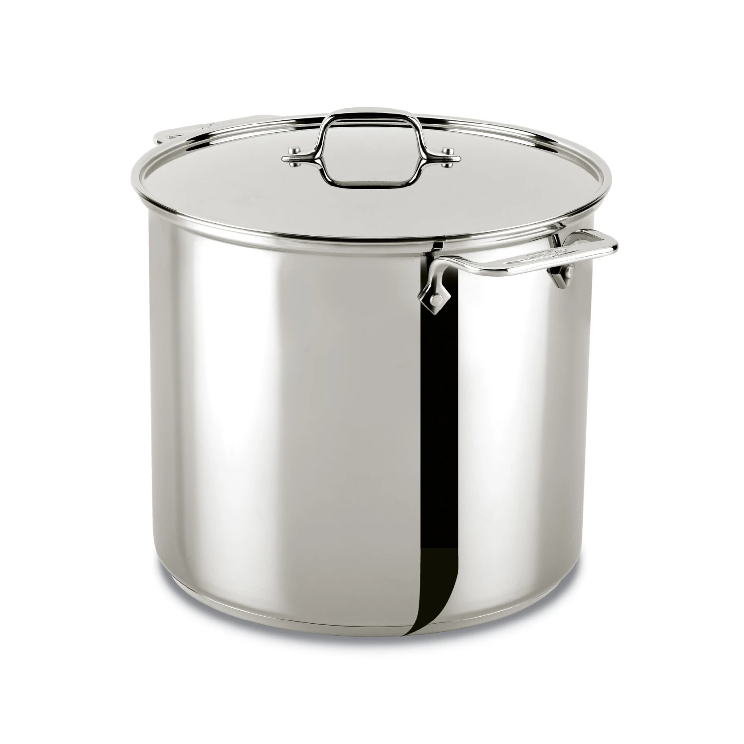 Oversized riveted handles stay cooler to the touch and gives plenty of room for a secure grip when wearing oven mitts. The stainless steel lid locks in moisture while high sides slow the evaporation of liquids, providing the ideal design for making stocks and stews and other slow-simmering jobs.. Whether you’re making a big pot of tomato sauce to can, cooking shell fish for a special dinner, or simmering a pot roast all afternoon, you’ll love the performance of this All-Clad Stainless Steel Pot!
