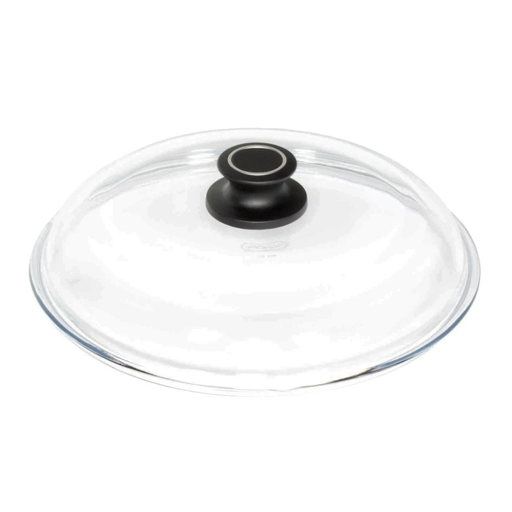 Retain moisture and control splatters while cooking with the 11″ Glass Lid for AMT Cookware. Lid fits round AMT Cookware including tossing pans, frying pans, braise pans, and stock pots. The tempered glass AMT Cookware lid features a vented dome design and bakelite handle that is compatible with electric and gas cooktops and oven-safe up to 464°F. Lid is dishwasher safe for quick and easy cleanup.
