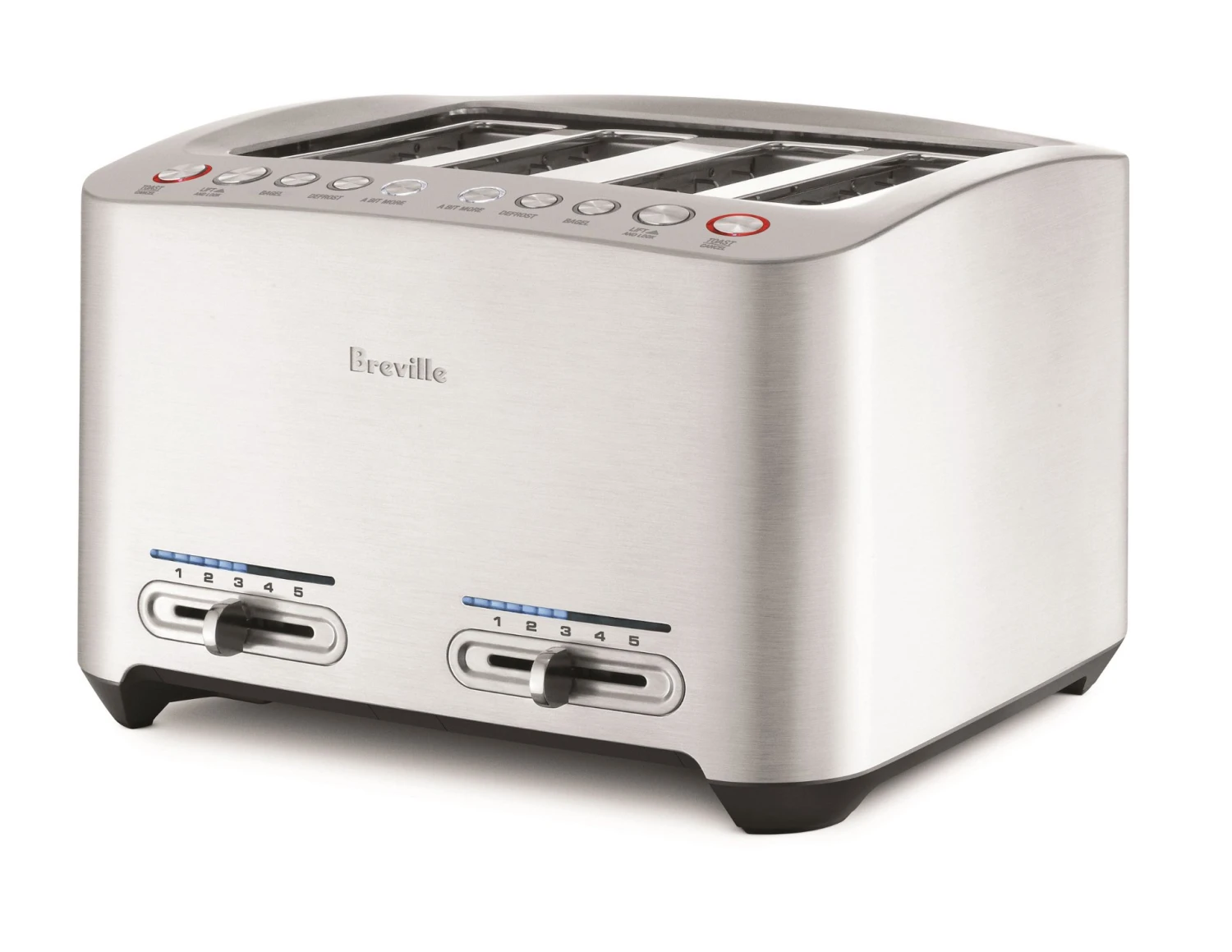 The Breville Die-Cast Toaster offers a relaxing toasting experience with a single-touch motorized automatic lowering for handling delicate breads. Simply slip your toast into the bread carriage and choose from four preset settings from Lift and Look, A Bit More, Bagel, and Defrost. With Breville’s Lift and Look technology in the toaster, you can peek at the toast even during the middle of the toasting cycle with no resetting or canceling.