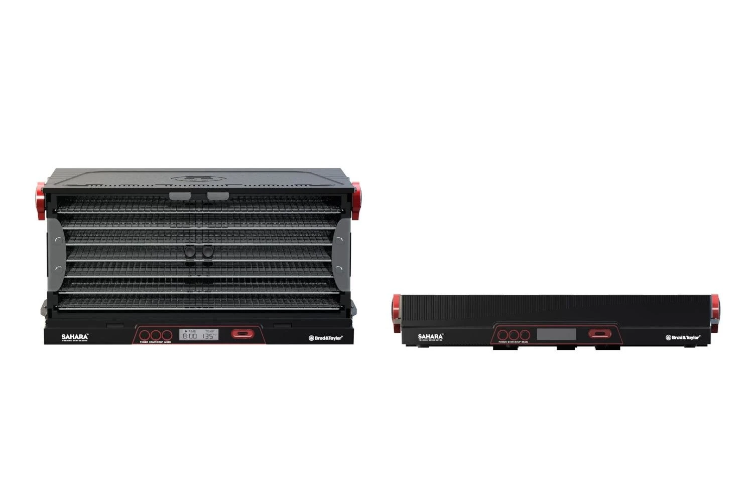 Love the idea of making healthy dehydrated foods in your own kitchen but hate the idea of giving up a whole cabinet just to store your dehydrator? Problem solved with the Brod & Taylor Sahara Folding Dehydrator with Poly Shelves! The first of its kind, this award-winning dehydrator provides you over 11 square feet of space and then compactly folds down to 1/3 of its size for easy storage.