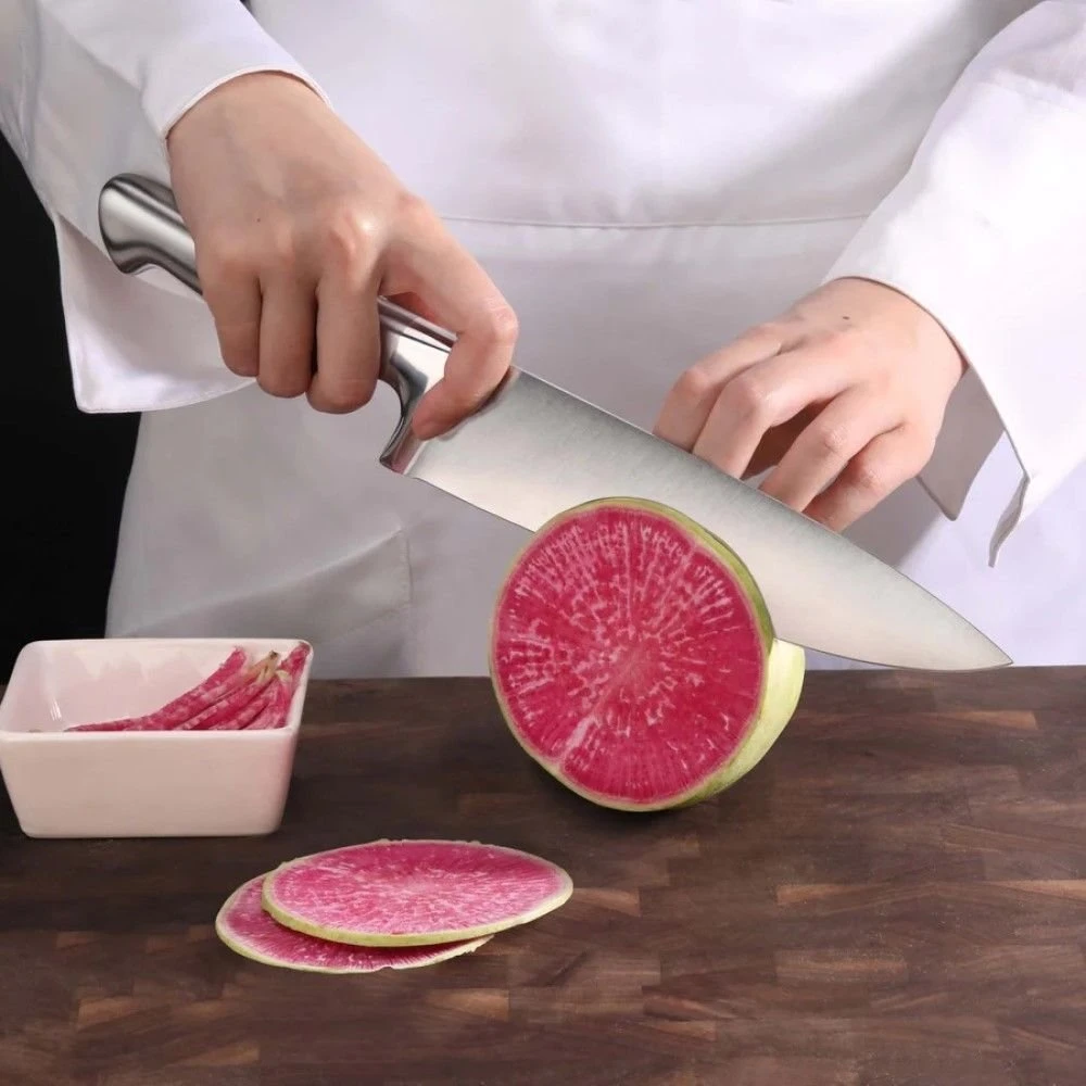 - Ultra-durable blade with a forged bolster is stain-resistant and easy to maintain