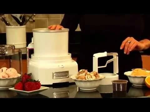 - Comes with freezer bowl, motorized base, mixing paddle, and easy-lock lid with spout on top