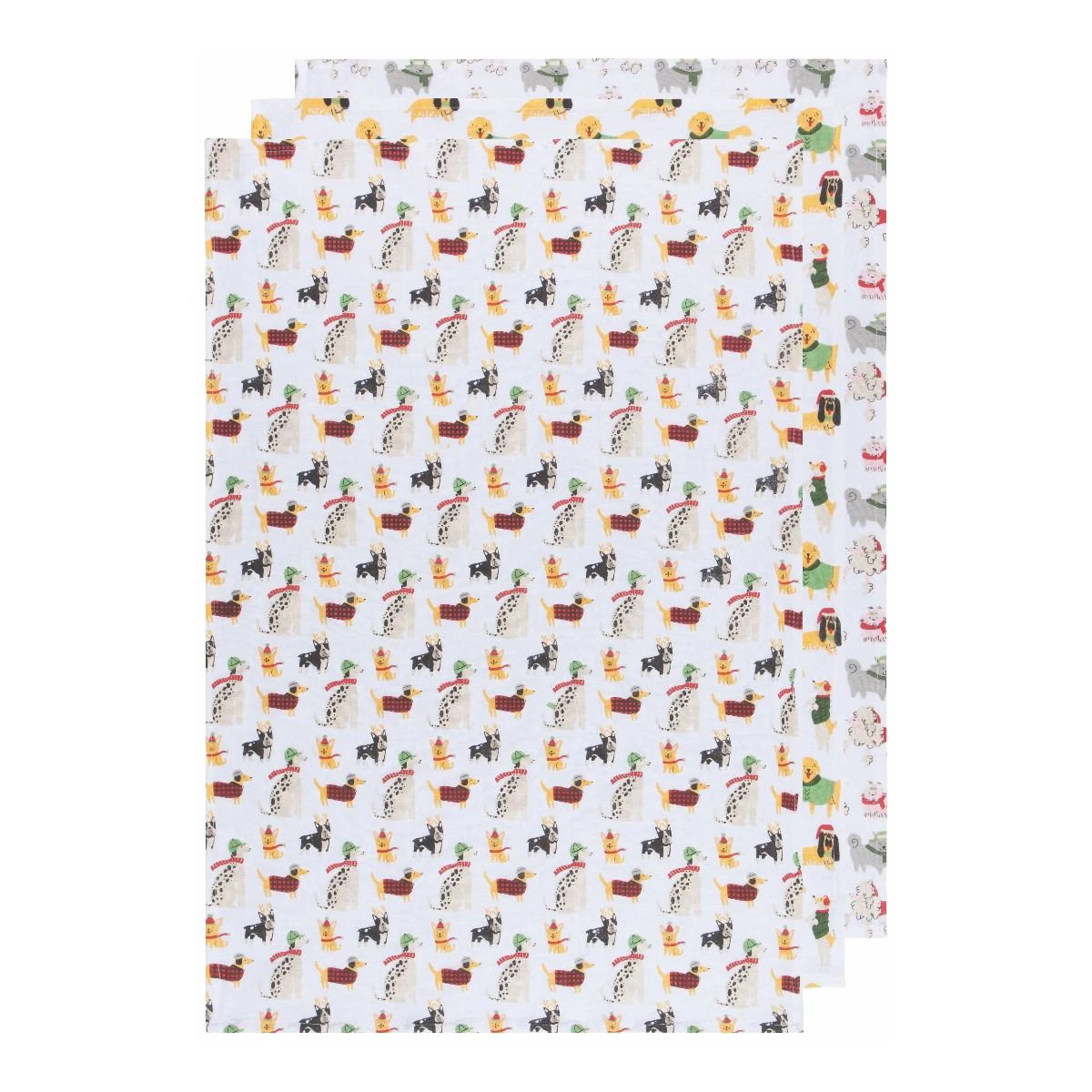 - Each towel features fun & festive cozy canines bundled in wool scarves & knit coats!
