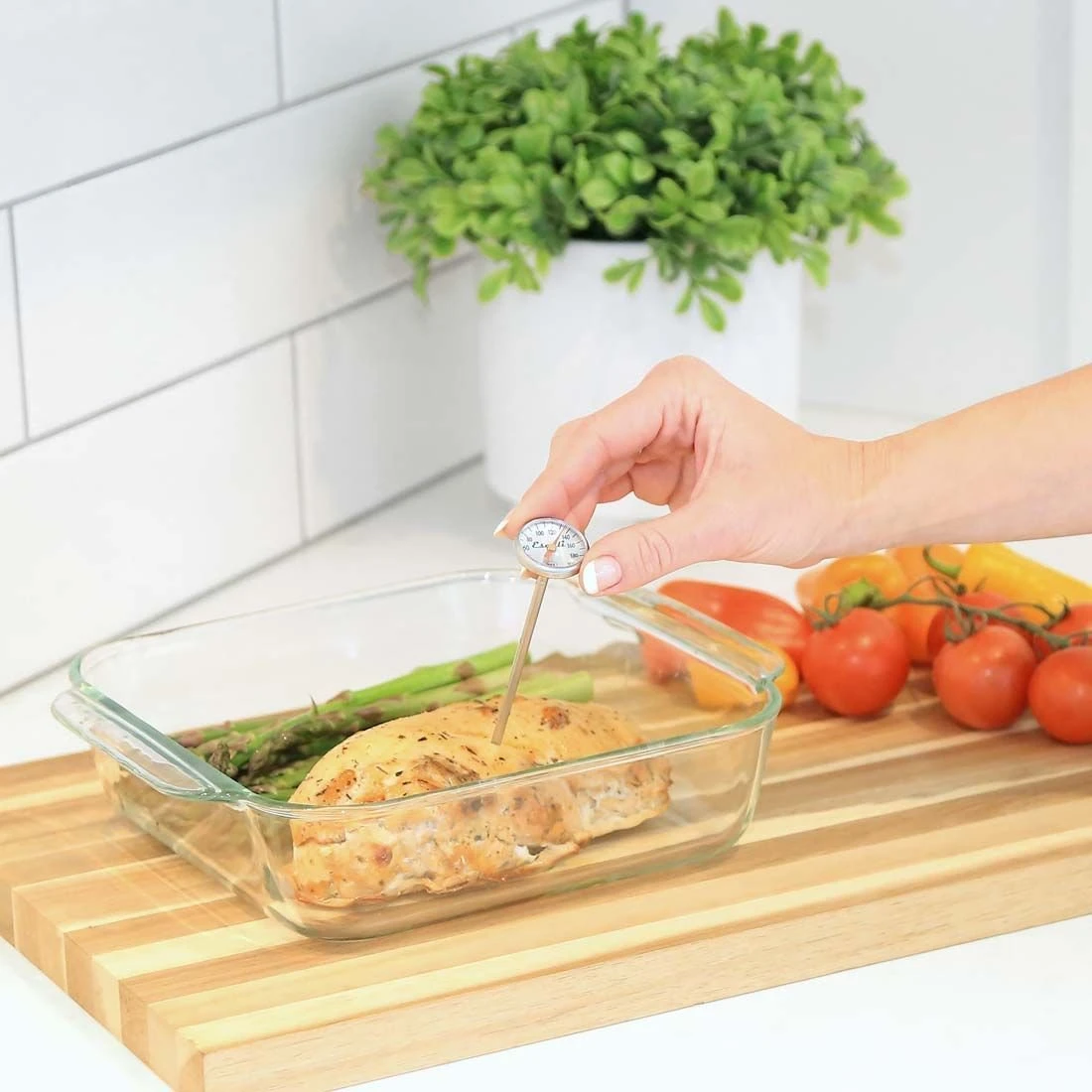 Ensure your meat is cooked to mouthwatering perfection every time with the Escali Instant Read Dial Thermometer! This durable stainless steel thermometer is NSF Certified and has a large easy-to-read display with a magnified lens. With an extra-long 5” stainless steel probe, you can easily reach into larger food including pot roast and turkey to ensure your meat is cooked thoroughly. It also comes with a protective antimicrobial probe sheath that has a pocket clip so you can keep it by your side while cooking and features target internal cooking temperatures for beef, poultry, pork, lamb, & veal for your reference. Plus, it’s dishwasher-safe for easy cleaning! For a reliable thermometer that’ll help you cook up tender meats, moist turkeys, and more, try the Escali Instant Read Dial Thermometer!