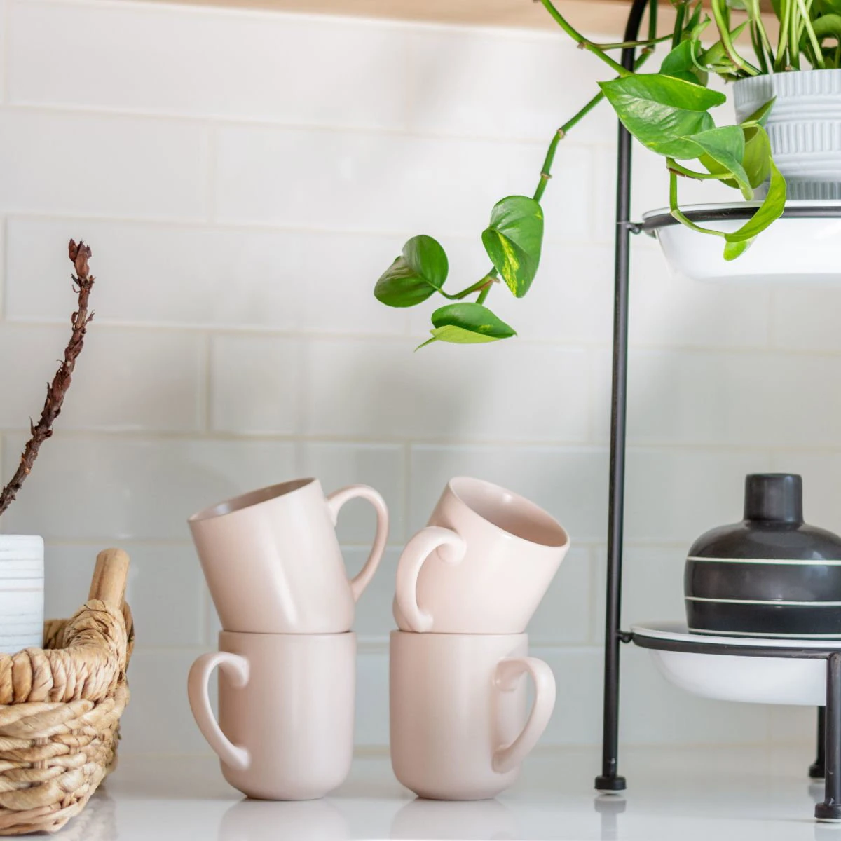 Sip your morning coffee or tea from a mug that captures the essence of your modern minimalist style with the Everything Kitchens Modern Flat 15oz Mugs (Set of 4) in Soft Pink! These stoneware mugs are the perfect way to add a subtle pop of color to your kitchen while blending in with your neutral aesthetic. The clean, modern shape pairs beautifully with other pieces from the Everything Kitchens Modern Flat Collection, and the matte glaze in a light and airy Soft Pink color delicately dresses your tabletop with subtle chicness. The 15oz capacity is the perfect size for a generous pour of coffee to start your day or a steamy cup of herbal tea when getting ready for bed, and the elegantly curved handle makes for easy carrying. Complement your modern or contemporary kitchen with the Everything Kitchens Modern Flat 15oz Mugs (Set of 4) in Soft Pink!