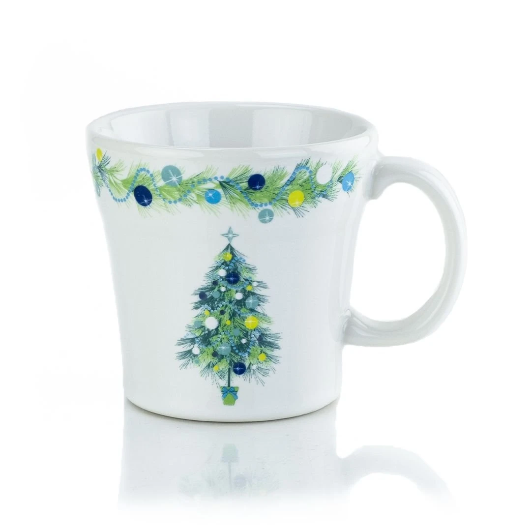 Fiesta® 15oz Tapered Mug – Blue Christmas Tree (White) Features:
