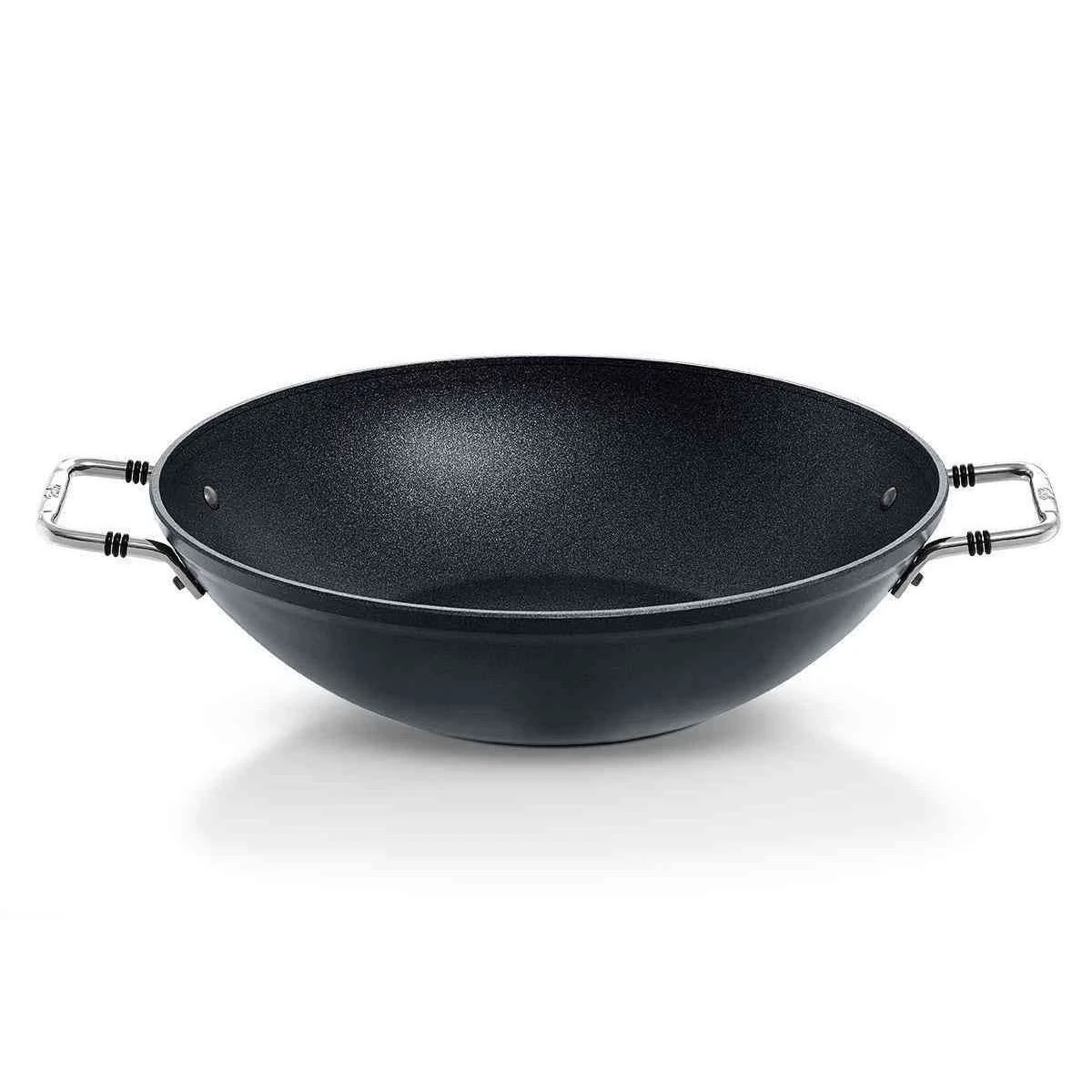 - Metal heat-resistant handles provide a secure grip while moving wok from the stovetop to the oven to the table