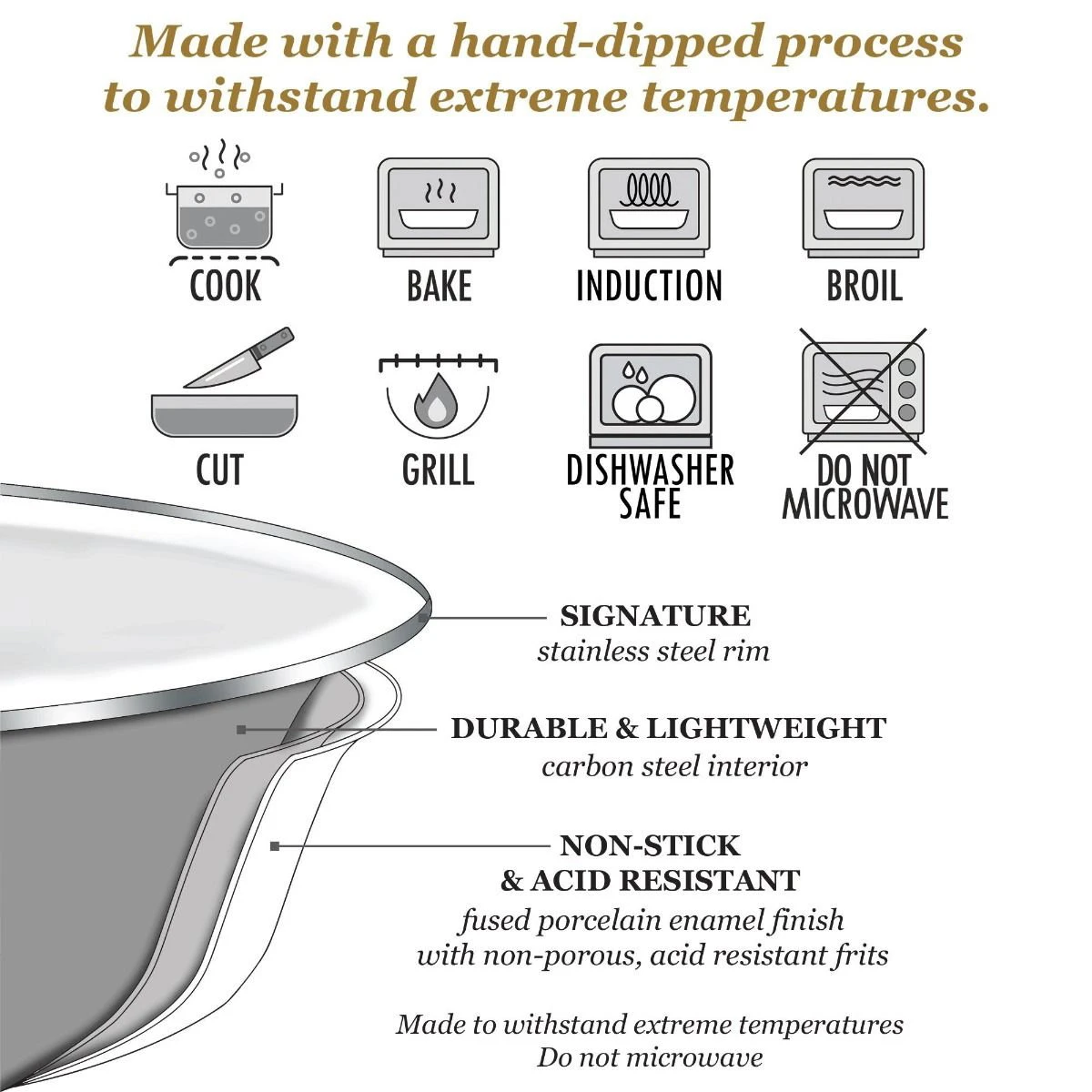Golden Rabbit Enamelware 5 Qt. Large Saute Pan With Lid | White
