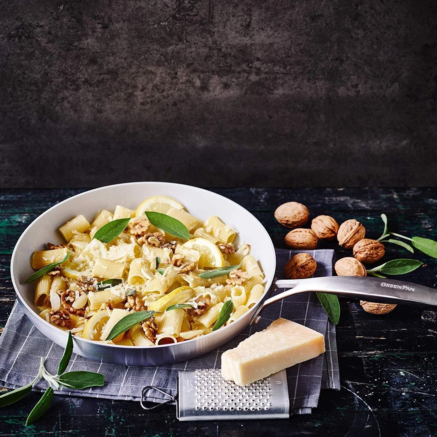 Sear a delicious fish filet or fry a perfect egg with the Venice Pro Evershine™ 12” Frying Pan! From the pioneers who created the first 100% healthy ceramic nonstick frypan on the market, the Venice Pro Collection features pristine, tri-ply stainless steel cookware that’s been treated with Evershine™ – a toxic-free, electro-chemical treatment that’ll prevent your pan from discoloration or tarnishing, even after years of use. Featuring a riveted stainless steel handle and trimmed edges for a sleek look, this pan is finished with GreenPan’s Thermalon Minerals nonstick coating that allows you to use less oil when frying and makes cleanup a breeze! Perfect for sautéing, searing, browning, frying, and more, this dynamic pan is grill-safe, dishwasher-safe, and oven-safe up to 600°F, and safe for use with metal utensils, giving you ultimate cooking versatility. For truly stainless steel cookware that’ll remain bright, beautiful, and looking like new over a lifetime of cooking, try the Venice Pro Collection by GreenPan today!