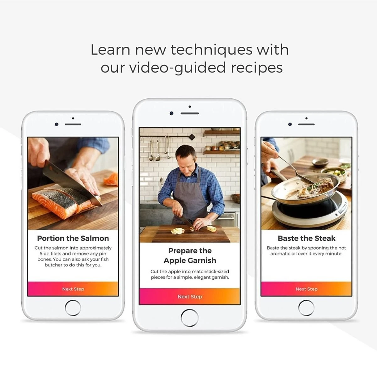 The Cue App: The Hestan Cue App offers over 500 recipes developed by culinary scientists & Michelin-star chefs, with new recipes being continually added. Choose “Control Mode” for controlling the time & temp according to your own preferences, or have the Cue app guide you through one of their many incredible recipes. With detailed instructions & step-by-step videos, Hestan Cue has perfected the timing, temperature, and steps from prep to plating, so you can achieve restaurant-quality meals right in your home. If you’ve always wanted to perfect the art of cooking meat, the Cue app will walk you through achieving your preferred doneness – just choose how you want your food cooked, and the Cue takes care of the timing and temperature to serve up perfect results! Plus, as you’re guided through your recipes, the Cue offers tips and techniques that allow you to learn while you cook, so you can learn to cook like a professional and become a master chef in your own kitchen.