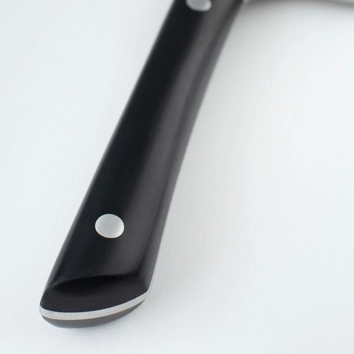 The Shun Kai PRO 7″ Cleaver features a wide & thick German steel blade that’s incredibly tough for performing large cutting tasks. This strong & sturdy knife is made of DIN1.4116 German steel with a hefty 4mm-thick blade that’s sharp and tough enough to cut bones for stock, chop meats, break down poultry, and even tenderize meats. This cleaver has a double-riveted handle and full-tang construction for a comfortable balance and reliable durability. The PRO series knives are built to stand up to daily professional use and are NSF Certified for use in commercial kitchens. With a limited lifetime warranty, you can count on the precision performance this Kai PRO knife will bring to your prep work.