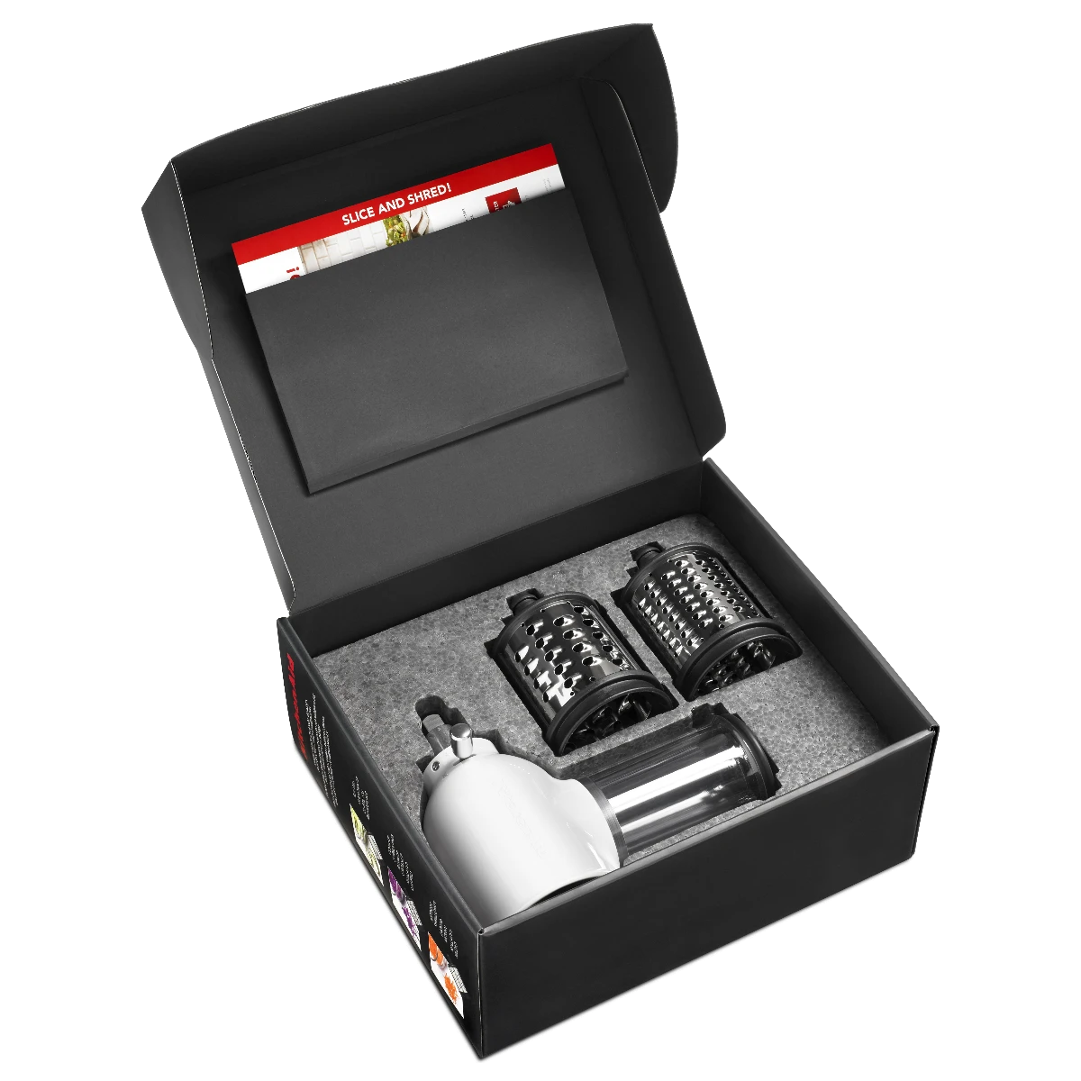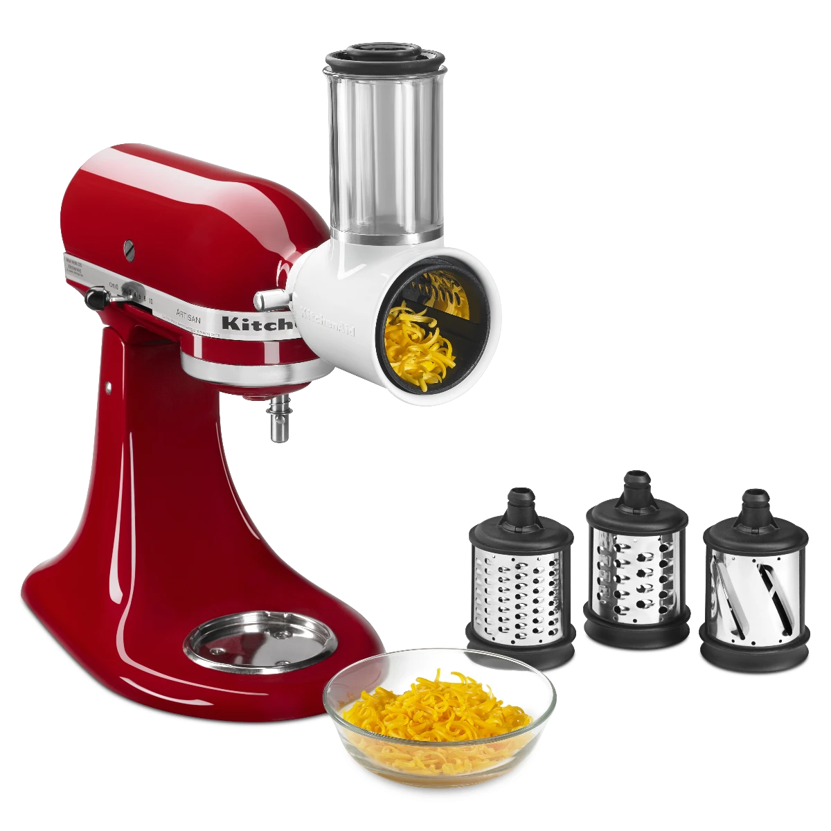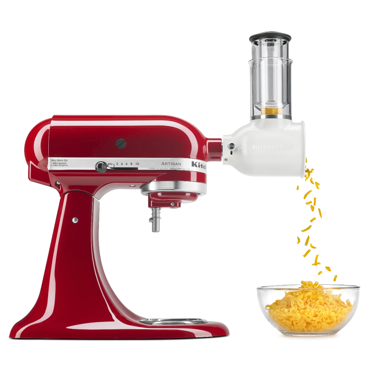 Slice, dice, and shred your ingredients with ease using your KitchenAid Stand Mixer and the Refurbished Fresh Prep Slicer/Shredder Attachment. The Fresh Prep Slicer attaches to the universal hub on the front of your KitchenAid stand mixer and is compatible with all mixer models. Designed to help you prep almost any meal, this attachment comes with three interchangeable blades; a slicing blade, coarse shredding blade, and medium shredding blade. Make the prep work for your next meal a snap, get the Refurbished Fresh Prep Slicer/Shredder Attachment from KitchenAid today!