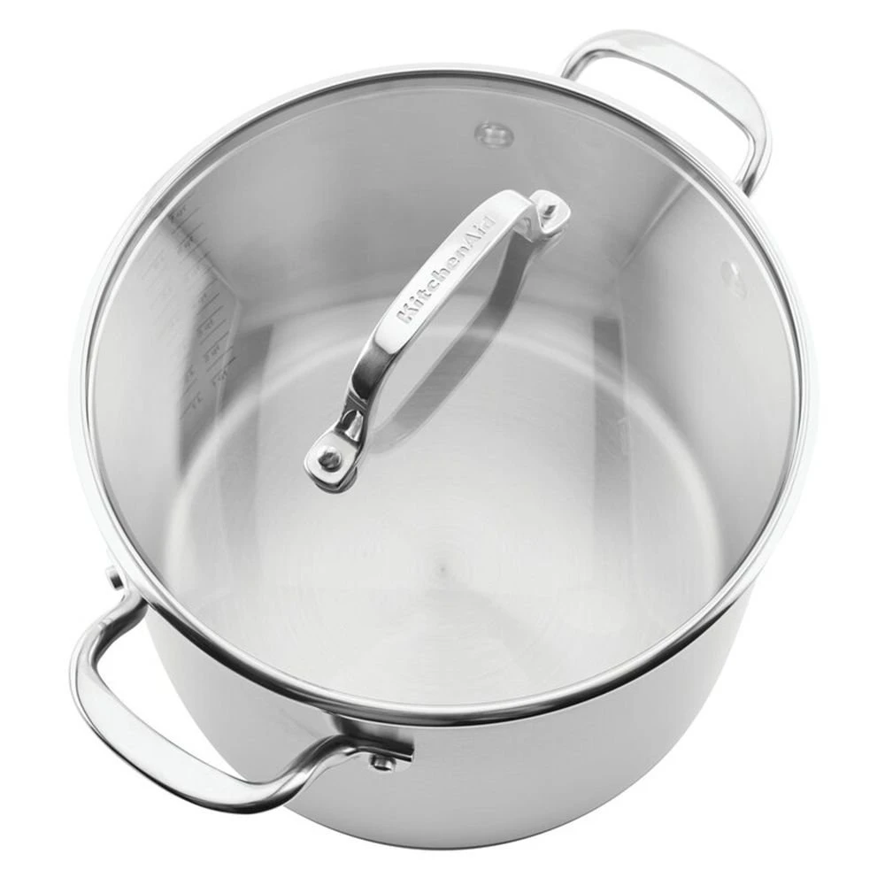 KitchenAid 8Qt Stainless Steel 3-Ply Base Stockpot w/Lid Features: