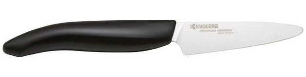 The Kyocera 3 inch black handled ceramic paring knife is perfect for fine detail tasks like peeling, mincing, and trimming. Great for use on vegetables, fruits and boneless meats the ceramic blade is constructed out of Kyocera’s Zirconia 206 advanced ceramic. This superior ceramic blade will keep its sharpness 10 times longer than traditional steel blades and will even out last other ceramic knives. Unlike other ceramic knives the Kyocera ceramic knife comes with a lifetime warranty and lifetime complimentary sharpening.