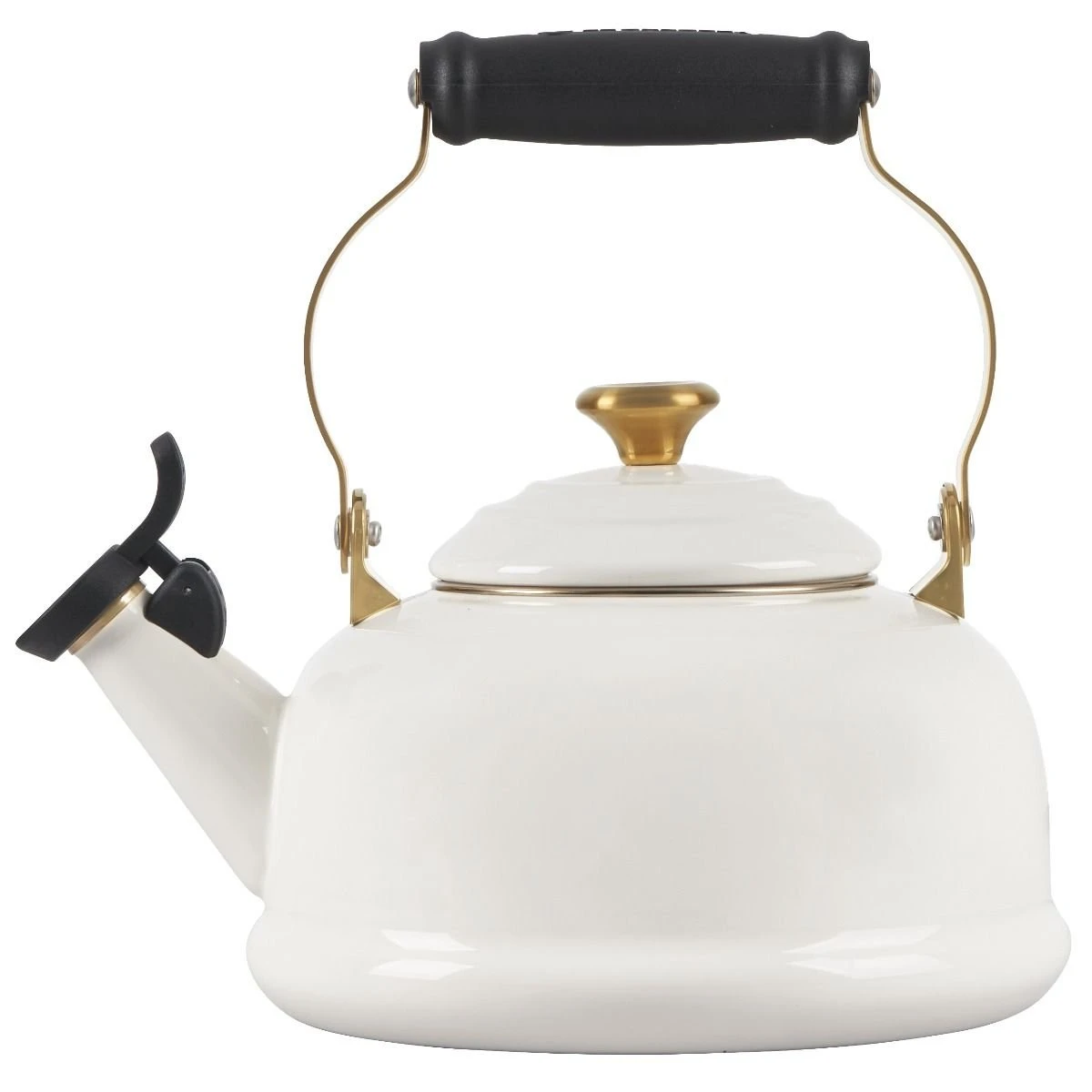 Le Creuset 1.7 Qt. Whistling Kettle – Noel (White & Gold) Features: