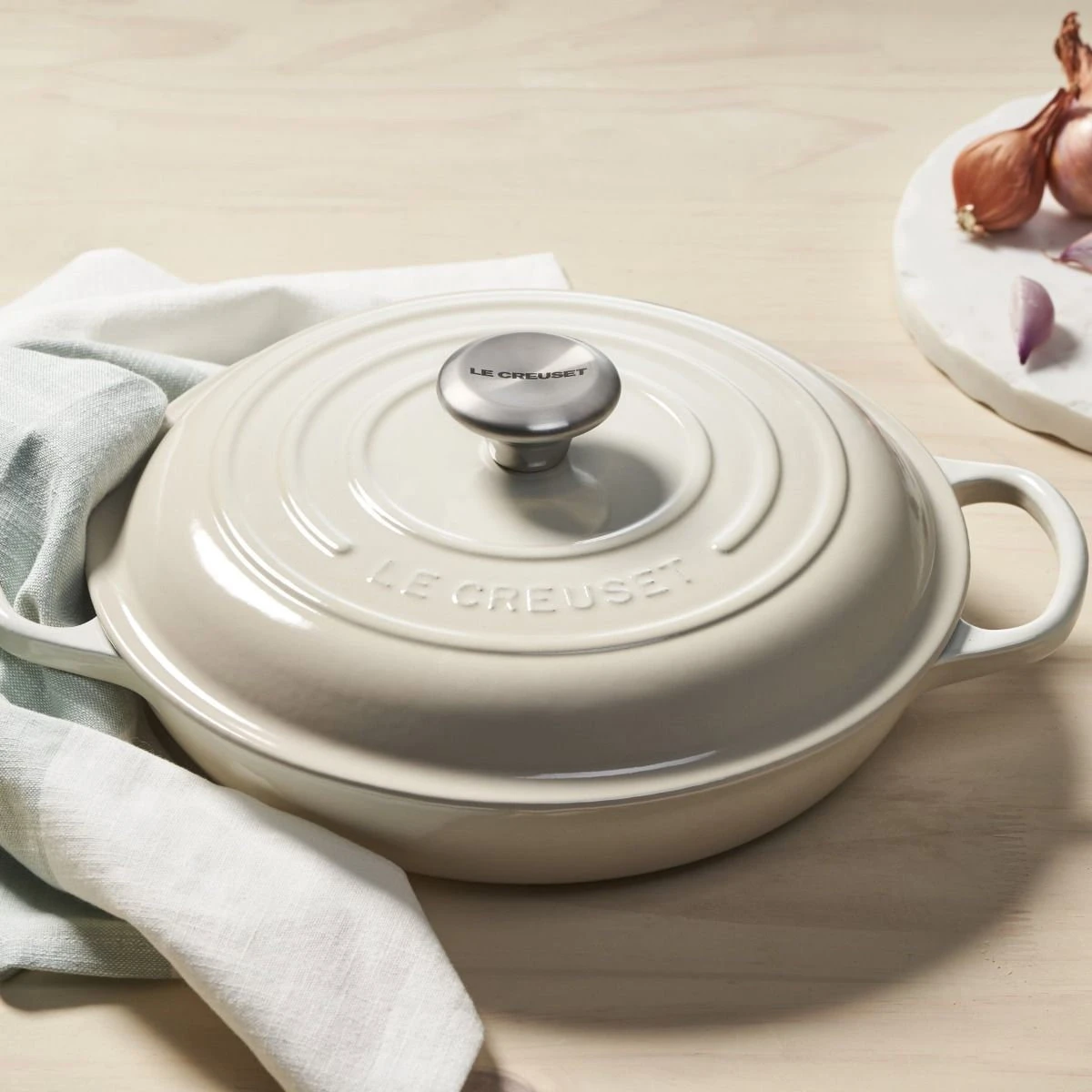Le Creuset 2.25-Quart Signature Braiser with Stainless Steel Knob (Meringue) Features: