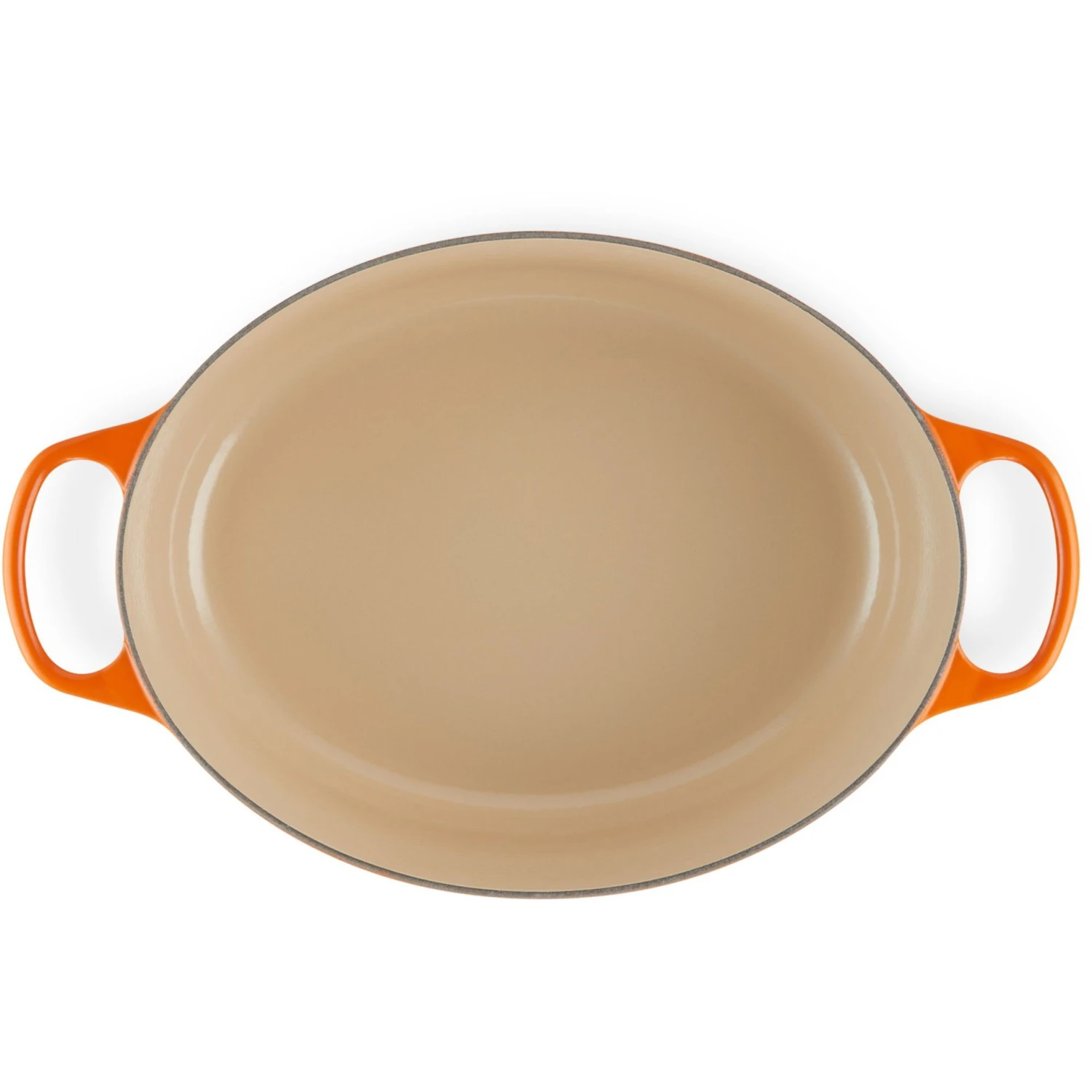 Le Creuset 9.5 Qt. Oval Signature Dutch Oven with Stainless Steel Knob (Flame Orange) Features: