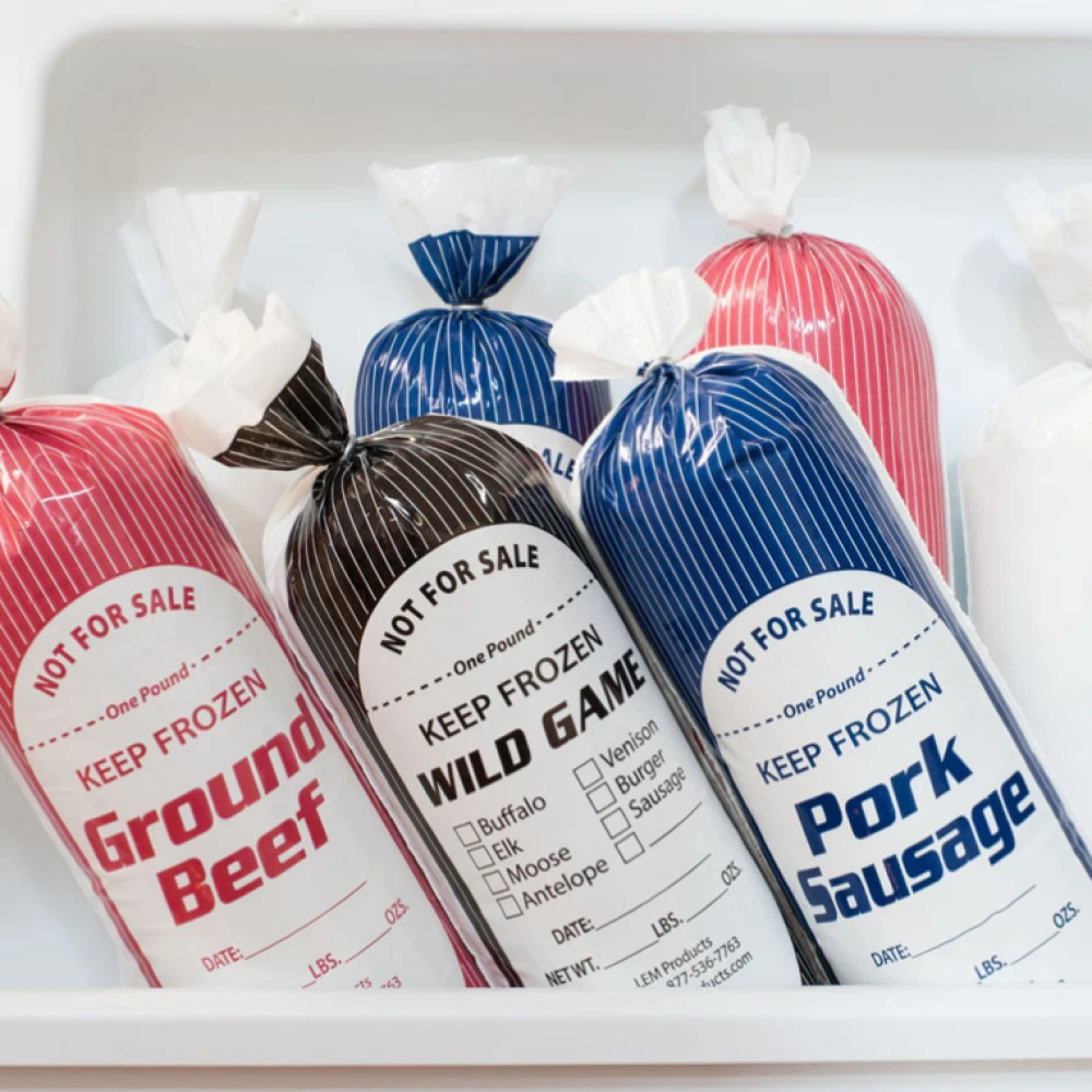 Store enough ground beef for all the burgers and meat loaf you can eat with LEM’s 2 lb. Ground Beef Bags – 1000 Count. These opaque freezer storage bags are made of quality polyethylene and are 2mm thick to protect against freezer burn. When full and frozen, these bags stack conveniently in the freezer and have a 1.5″ bottom gusset to protect against bursting. These bags are also printed with convenient fill-in options to label date, weight, game type and finished meat type. Store meat to enjoy later or give away to family and friends with the 1000 count LEM 2 lb. Ground Beef Bags!