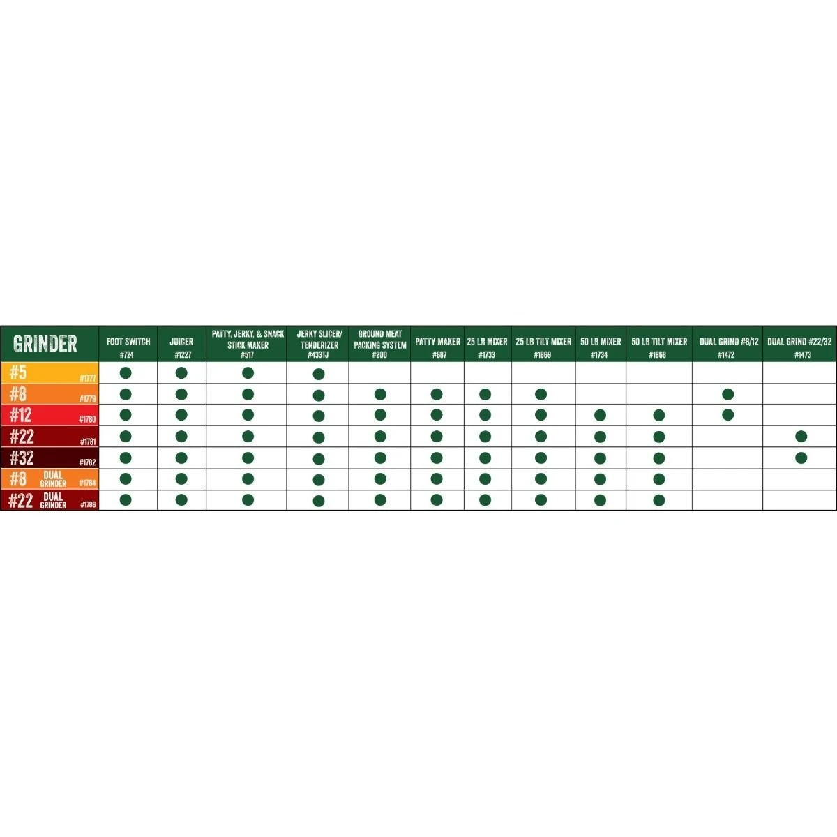 - Unit also attaches to ANY meat grinder with standard #5, #8, #12, #22, or #32 head