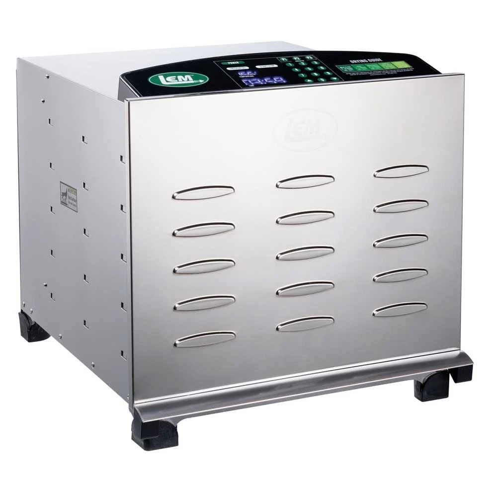 Make delicious dehydrated fruits, veggies, or jerky with the Digital Dehydrator from LEM. This model comes with 10 chrome-plated trays that have a 16 ft.2 surface area for drying. The trays have 1/4″ holes, meaning they can hold the smallest of fruits, veggies, or herbs. The ingenious door design is patent pending, and features a magnet locking mechanism that allows you to monitor your food with minimal heat loss. The horizontal air flow system with the rear-mounted fan assures uniform drying. There is also a 24-hour timer with an auto-shutoff feature. The digital display lets you choose between 3 customizable preset temperature controls as well. With this dehydrator, the only difficult part of the process is eating the mountain of dried food you’ll make! For the best in dehydration, go with LEM!