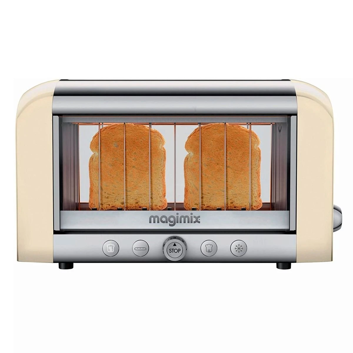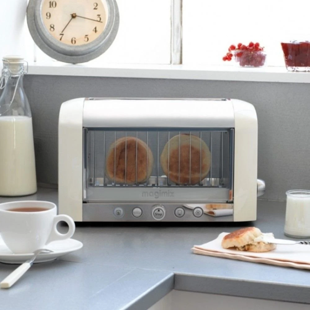 Enjoy your toast exactly the way you like it with the Magimix® Vision Toaster (Cream)! The world’s first see-through toaster features a large viewing window that allows you to see exactly when your toast reaches your preferred level of browning. Extra-wide slots accommodate all types of bread, from bagels to baguettes to buns.