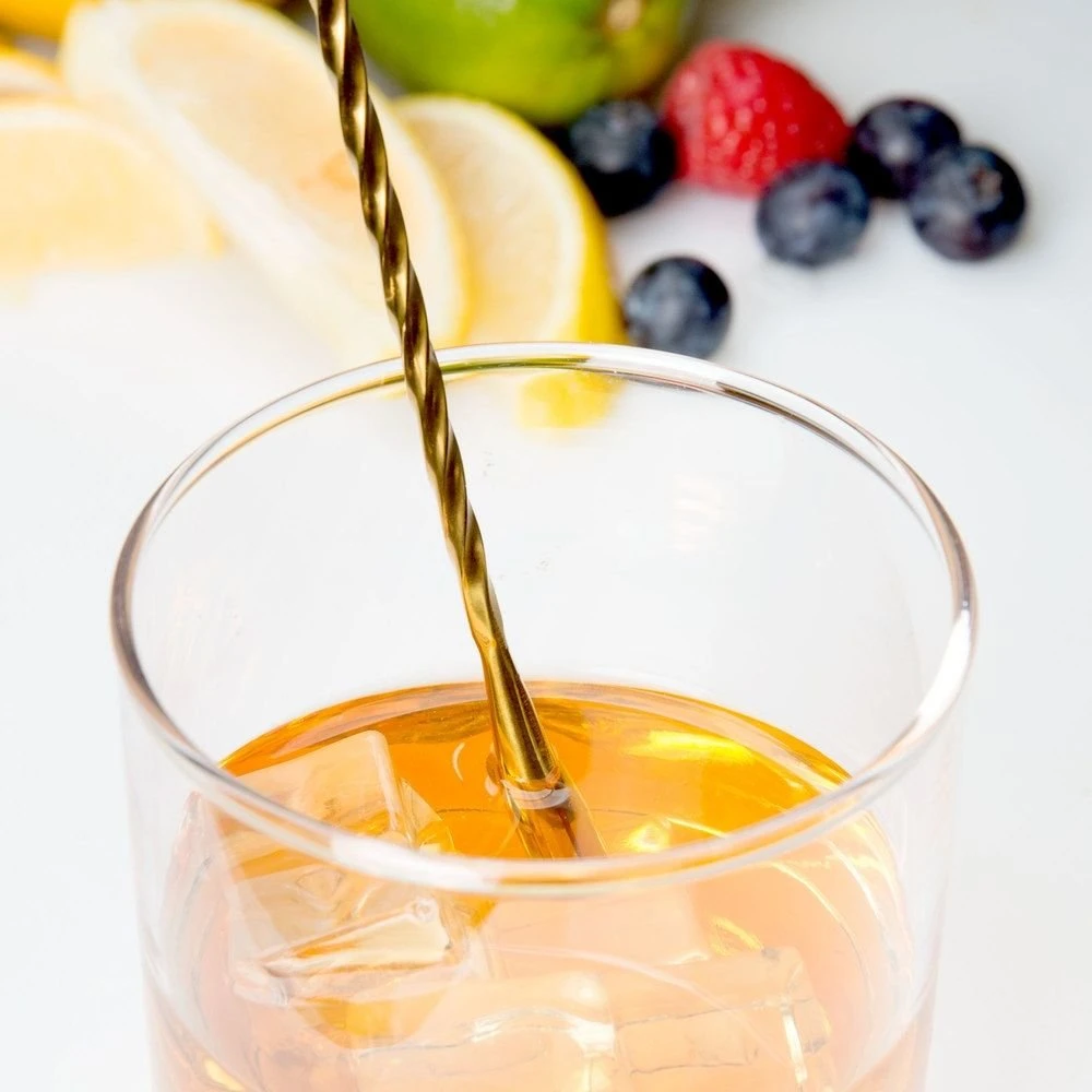 Martinis. Manhattans. Old Fashioneds. Whiskey Sours. Mixing the classics for your cocktail-loving friends starts with reaching for classic bar tools from Barfly Mixology Gear by Mercer. Show your hand at smoothly mixing cocktails made to order or by the pitcher with the Mercer Barfly 15.75” Gold-Plated Classic Teardrop Bar Spoon M37013GD. Barfly’s beguiling bar spoon with the vintage design is made of a single piece of gold-plated stainless steel that won’t absorb stains or odors that could cloud the taste of fine spirits. This dual-use bar spoon has a precision-molded spoon on one end for accurate measuring, precise pouring, and gentle stirring; the other end is weighted with a classic “teardrop,” a perennial favorite of professional bartenders for providing balance and easy mixing. The elegant spiraled handle is designed with a twist to gently blend ingredients without bruising, and at a stately 15.75” long, it’s perfect for tall drink glasses and pitchers. With such alluring looks and expert performance, Barfly Mixology Gear by Mercer can turn your kitchen into the neighborhood’s trendiest cocktail lounge.