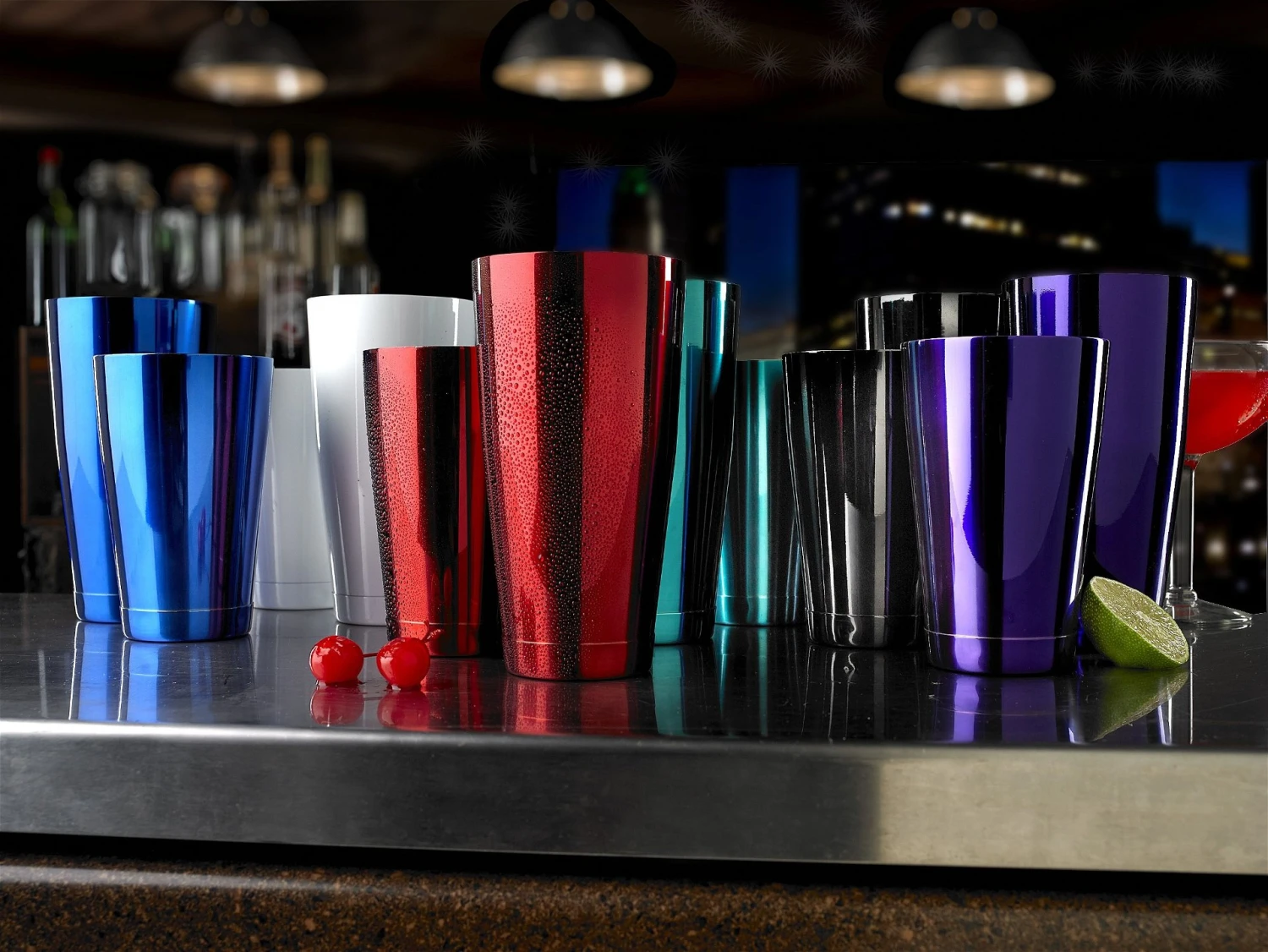 Add a pop of color to your mixology set with the Mercer Barfly Teal Shaker Tin! This 18 oz. cocktail shaker accommodates full-size shakers and mixing glasses and features a glossy finish in vibrant teal that’ll give your bar a stylish flair. With an 18/8 stainless steel core, a capped bottom for intense durability, and a satin interior for easy release, this Barfly 18 oz. Cocktail Shaker will serve your guests a fantastic cocktail every time!