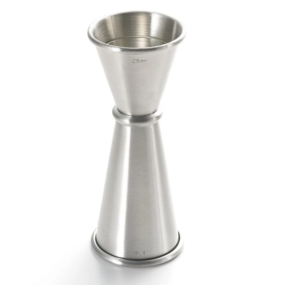 Make the perfect cocktail with this Barfly Stainless Steel Jigger! This stainless steel double jigger measures 25mL on one side and 50mL on the other—perfect for adding 25mL of gin to a gin and tonic or 50mL of simple syrup to a classic daiquiri. It has internal measurement lines for even more options. Made of 18/8 stainless steel and featuring a rolled top edge for strength, this Japanese style jigger will serve your guests a fantastic cocktail every time. And thanks to its industrial-style feel and shiny steel finish, you’ll love displaying it!