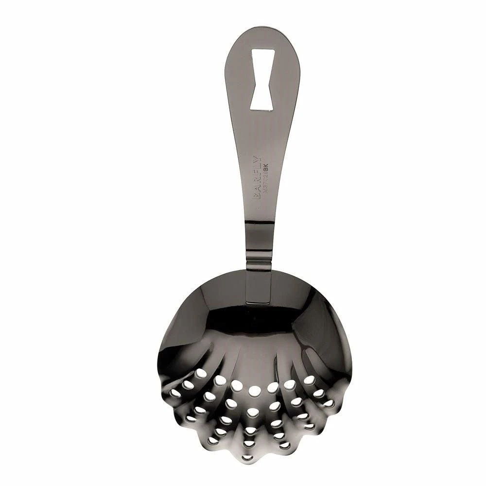 Mix, strain, and serve signature cocktails your guests will remember with the help of your new Barfly Stainless Steel Scalloped Julep Cocktail Strainer in Black! The julep strainer is a classic piece that will enhance your bar in both style and function.