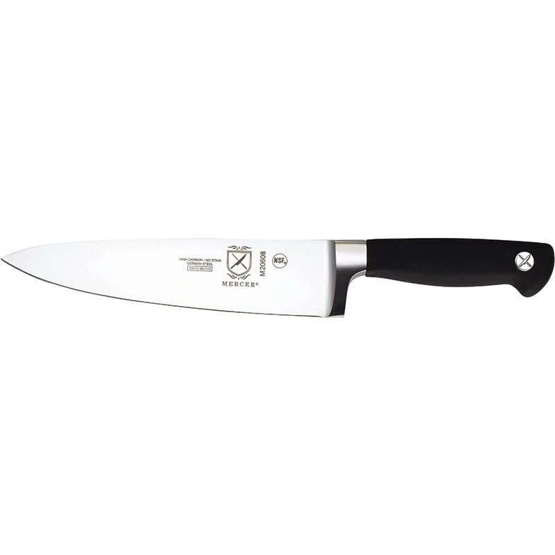 Jumpstart your cutlery collection with the Mercer Genesis 6-Piece Knife Block Set in Beechwood and Glass. This modern-looking knife block is perfect for any kitchen aesthetic. This set includes all the knives you need to tackle any kitchen task, from prepping fruits and vegetables to opening packages and breaking down poultry. Each knife is made of high-carbon stainless steel that is resistant to rust, corrosion, and discoloration. The blades are designed with a bolster and tang to make them perfectly balanced for easier handling. Build up a professional cutlery collection with the Mercer 6-Piece Knife Block Set in beechwood and glass.