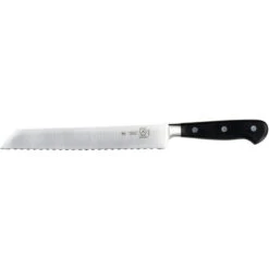 If you are looking for the perfect knife for cutting through tough skins like tomatoes or even the hard crust of bread, the Mercer Millennia 8” Offset Utility Knife with Wavy Edge in Brown is the knife for the job! The Millennia collection is NSF Certified and constructed from high-carbon, stain-free Japanese steel and features an ergonomic handles made of a combination of Santoprene for comfort and polypropylene for durability. The protective finger guard makes certain fingers stay off the back edge of the knife while the textured finger points ensure slip resistance, better grip and safety. With the offset handle you can be sure your knuckles will remain clear of the cutting board with no issues. When your kitchen demands the best cutlery, you can count on the Mercer Millennia 8” Offset Utility Knife – Wavy Edge to get the job done!