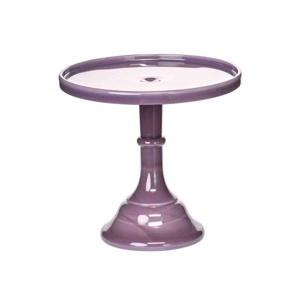 Elevate your homemade cake and other sweet treats with the Mosser Glass 9” Cake Plate in Egg Plant. This elegant cake plate is crafted from high-quality glass that undergoes an extensive firing, molding, pressing, hardening, and polishing process, resulting in a truly beautiful hand-crafted piece. With a simple vintage-inspired design and an elegant footed base, this lovely cake pedestal will add an extra-special touch when displaying cakes, pies, tarts, quiche, and other decadent desserts and appetizers. Use it daily to serve pastries and donuts or pull it out for special occasions, holidays, and tea parties. The Mosser Glass 9” Cake Plate also makes a great gift and will be a treasured addition to your serveware collection!
