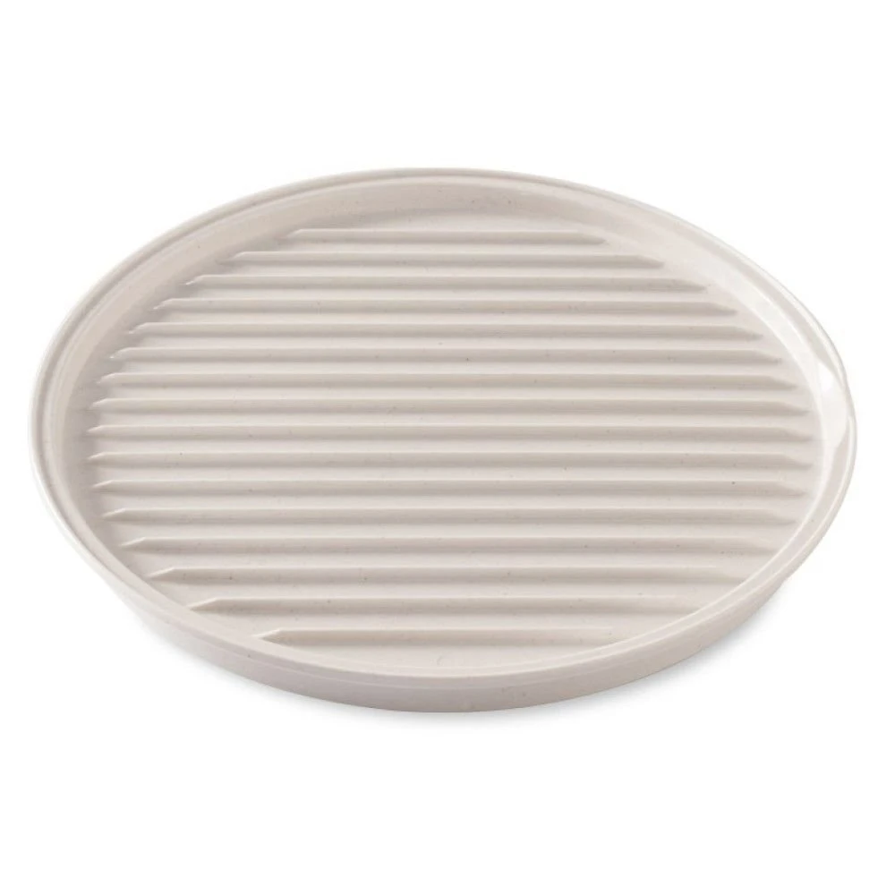 Ribbed surface drains fat while cooking bacon. Flat side can be used for general heating and serving and for heating pizza, tortillas, bagels, and more. Compatible with our 10″ Spatter Cover and Deluxe Plate Cover. Proudly made in the USA.