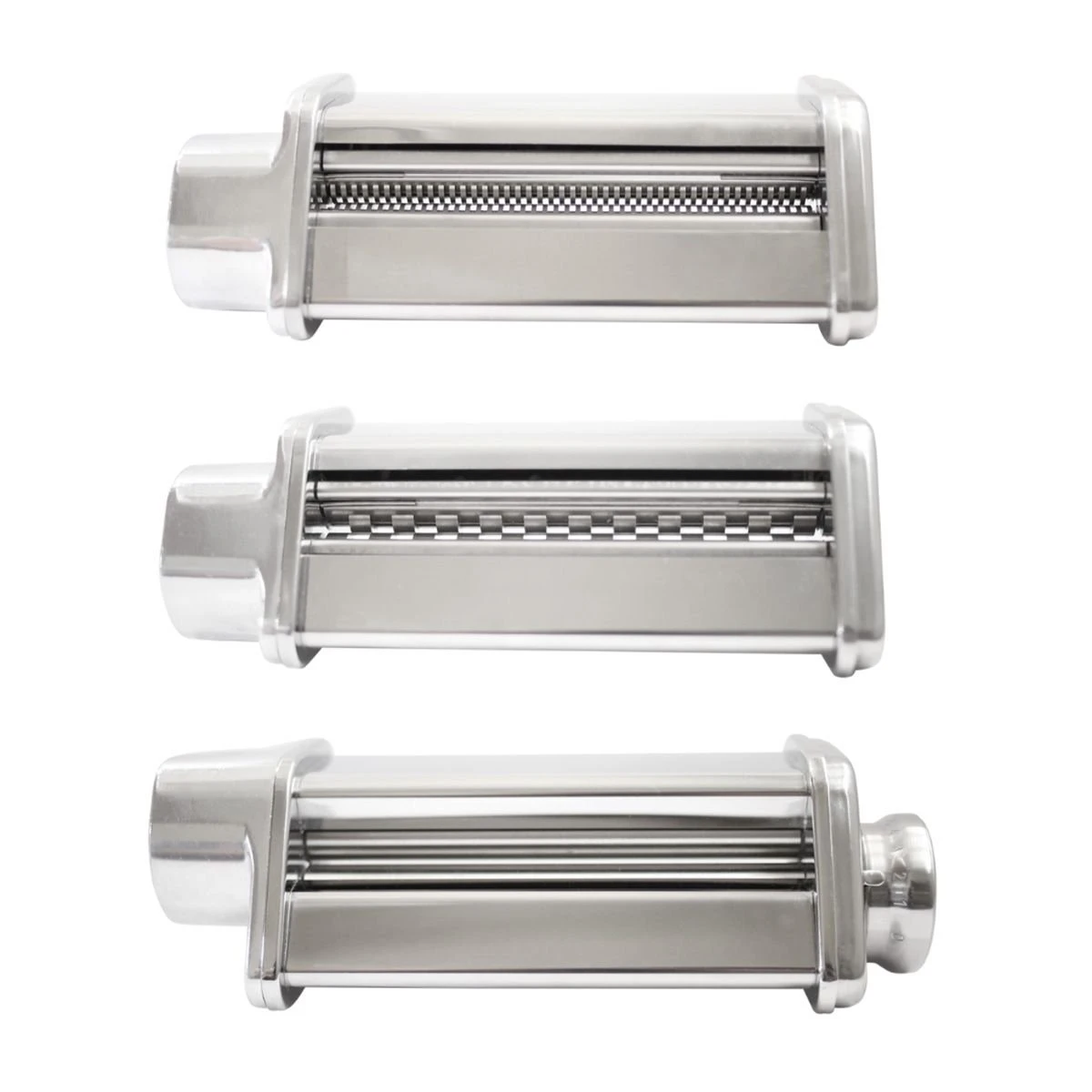 Expand the versatility of your NutriMill Artiste Mixer and bring the freshest pasta to the table with the NutriMill Pasta Cutter/Roller attachment! Easily create a wide range of multigrain pastas to meet your tastes or dietary needs with this set that includes a Pasta Roller (5.5″), Fettuccine (0.25″) Cutter, Angel Hair (0.06″) Cutter, and Adapter Leg. The roller attachment can be used for a variety of rolled-dough tasks such making crackers, wonton wrappers, or fondant.