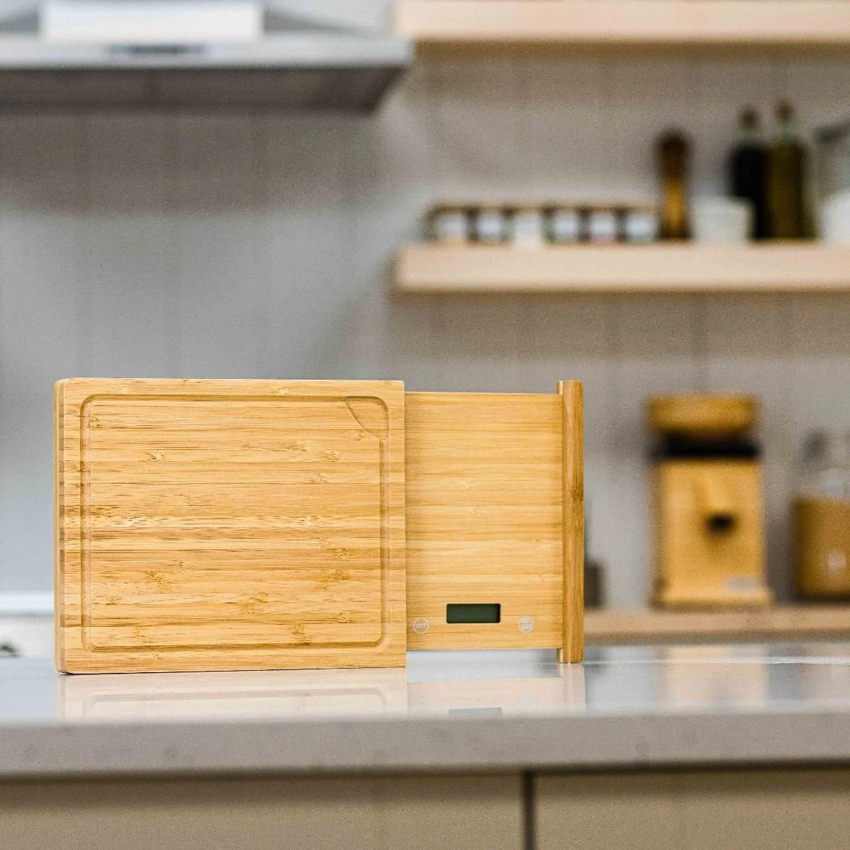 - The digital scale nests with the cutting board to save space in your cabinets or racks