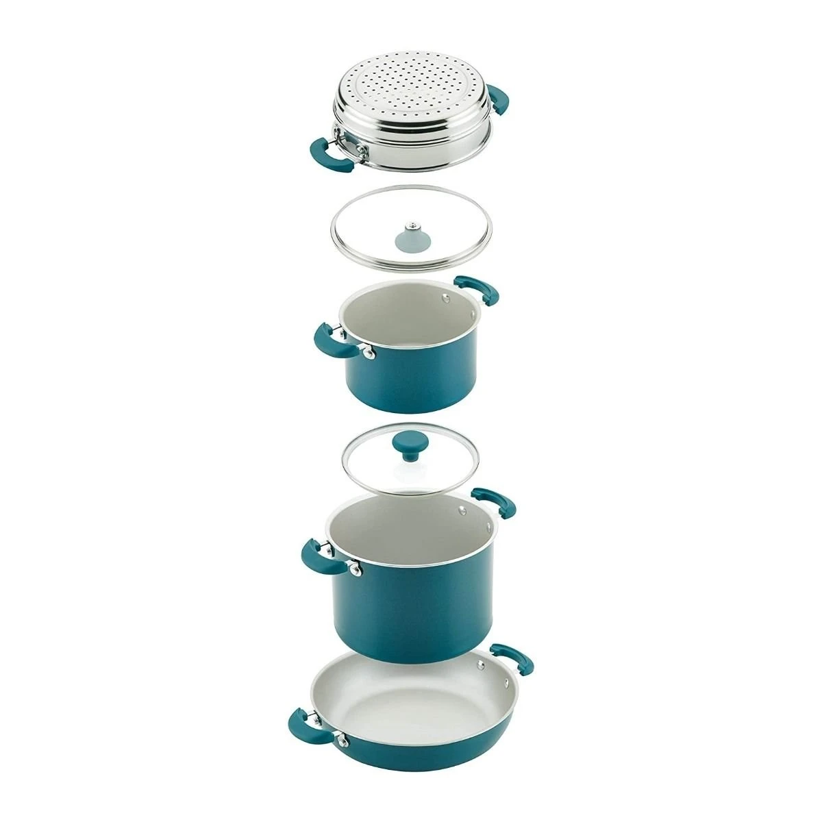 Rachael Ray 8-Piece Enameled Stacking Cookware Set Features: