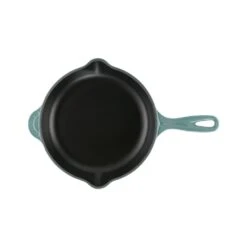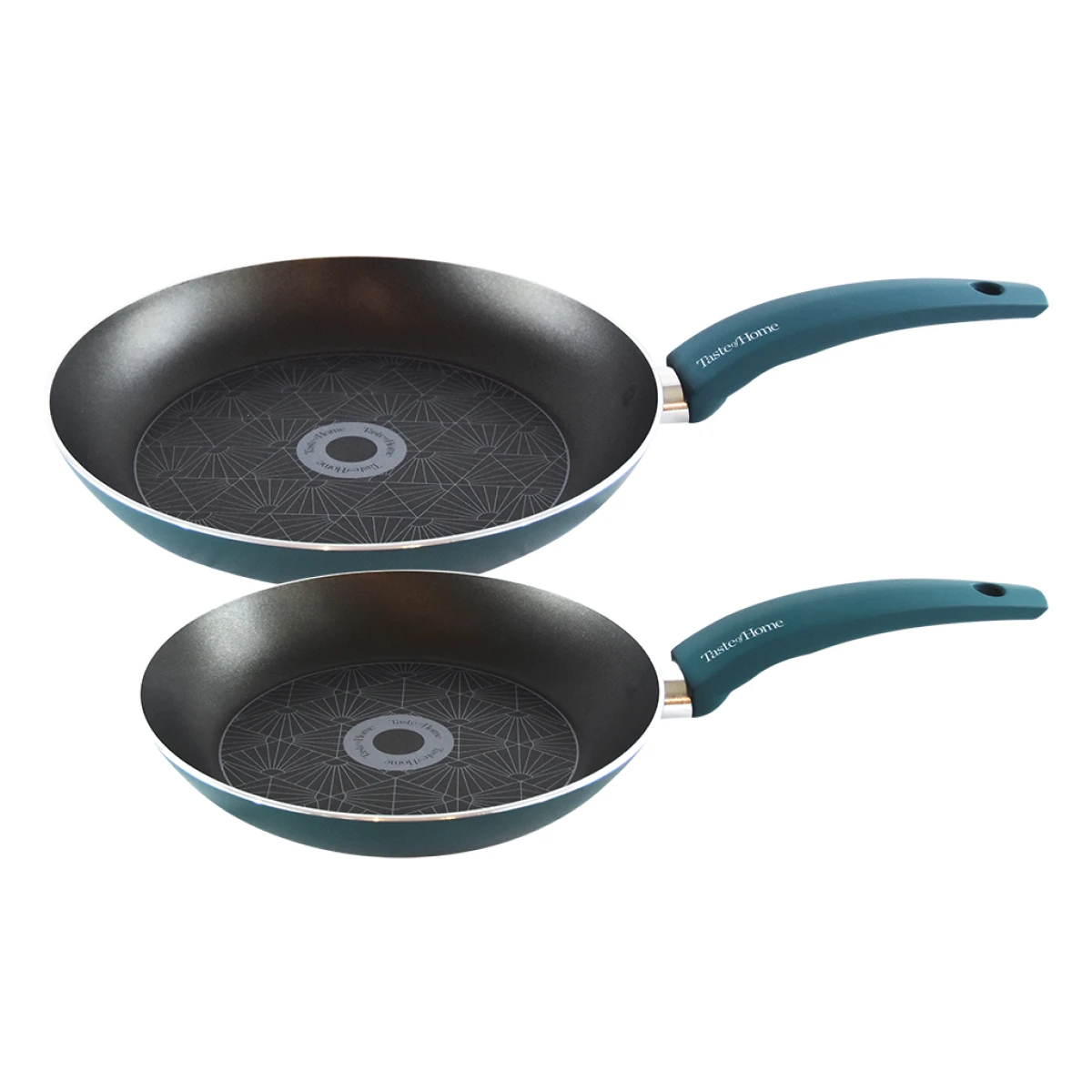 From a country breakfast to tender chicken dishes, the Range Kleen Taste of Home Aluminum Skillet (2-piece) puts quality tools in your hand to satisfy the tastebuds of your friends and family. Presenting themselves with Sea Green exteriors and handles, the forged aluminum will heat quickly and evenly throughout each skillet – just what you need for cheese quesadillas or searing salmon. These open skillets are made of 2.5mm aluminum and possess a premium non-stick coating that releases your food quickly and offers easy cleaning after the meal is done. The contoured soft-touch handles provide a comfortable grip and optimal control of each skillet. These skillets are suitable for oven use up to 300°F and are designed for everyday use. Dishwasher safe, but hand wash recommended, the Range Kleen Taste of Home Aluminum Skillet (2-piece) will give you the tools your need for preparing delicious and satisfying meals.