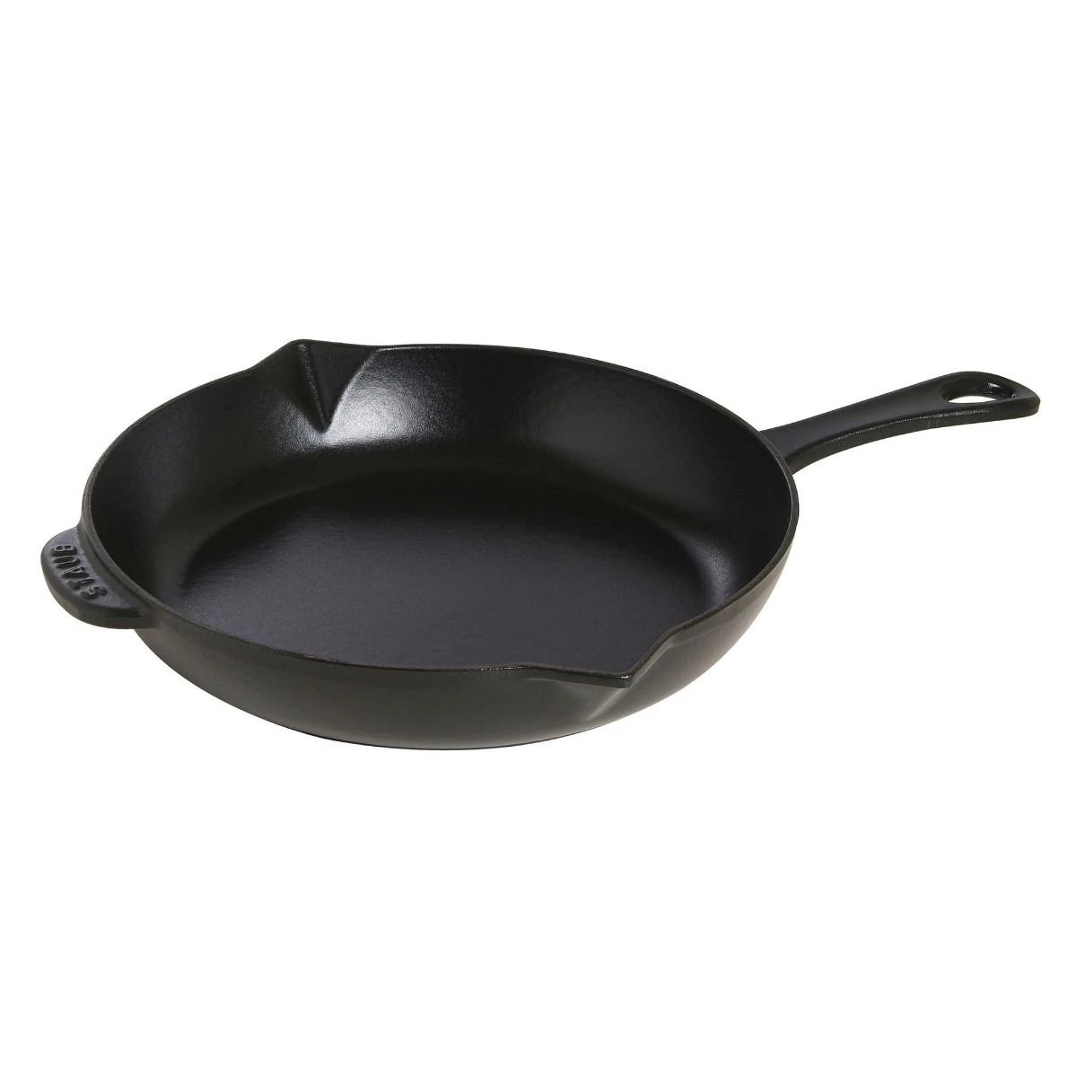 No matter if you’re sautéing a duck breast or frying turkey bacon for Sunday morning breakfast, the textured surface of this 10” Staub Fry Pan in Black Matte helps to brown foods perfectly and heats with even distribution. The ingenious multi-coat enamel makes cooking with cast iron a breeze and the coating requires no additional seasoning like other cast-iron pieces. The smooth enameled base is compatible with all cook tops even induction. Make breakfast, lunch or dinner a fantastic meal thanks to the Staub 10” Fry Pan.