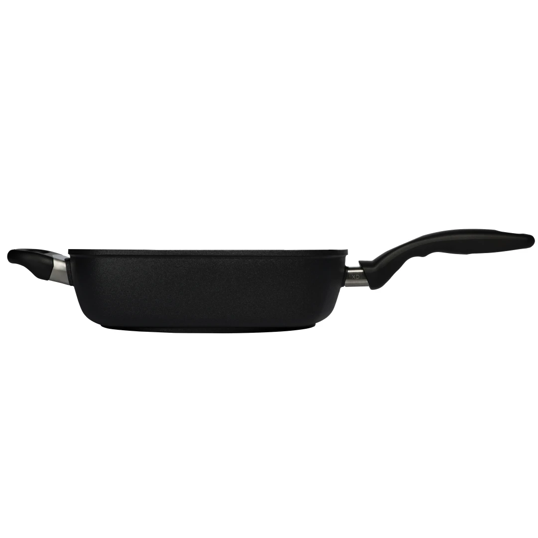 The new XD line by Swiss Diamonds has 20% more diamonds than before, making this sauté pan even tougher. The XD diamond-reinforced coating features an improved seal between the non-stick cooking surface and aluminum base, providing a tougher and more corrosion-resistant layer. This revolutionary coating provides better food release properties to allow cooking without oil for healthier eating.