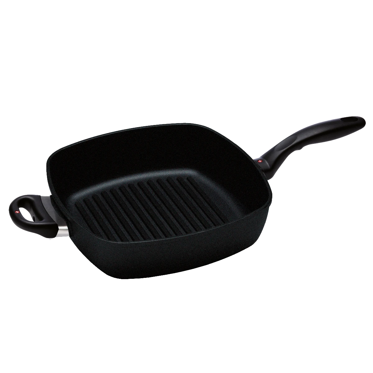 This Swiss Diamond XD Nonstick 11” Square Deep Grill Pan is perfect for preparing, cooking and serving all your favorite grilled vegetables and meat in one pan. This easy-to-clean non-stick pan is rivet-free and protects against bacteria. The comfortable, ergonomic, stay-cool handles can withstand heat up to 500°F so you can transition effortlessly between stovetop to oven.