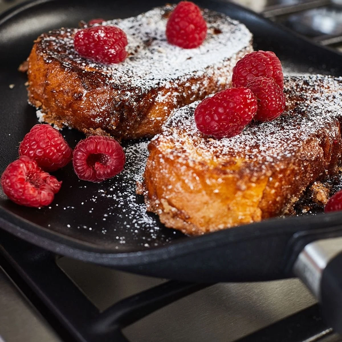 Create perfection with the best crepes, omelets, pancakes, bacon, and so much more with the Swiss Diamond XD Induction Crepe Pan! Made from 100% recycled cast aluminum, its impressive construction offers a diamond-reinforced (up to 20% more than the HD Classic) nonstick coating that will heat evenly throughout the cooking surface. This pan will allow you to make other things aside from breakfast foods: think seared meat skewers, freshly caught Atlantic cod, or sauteed vegetables. As a plus, this pan is compatible with all stovetops including induction. Backed by a limited lifetime warranty, the Swiss Diamond XD XD Induction Crepe Pan will be the ultimate pan for all sorts of meals for breakfast and beyond