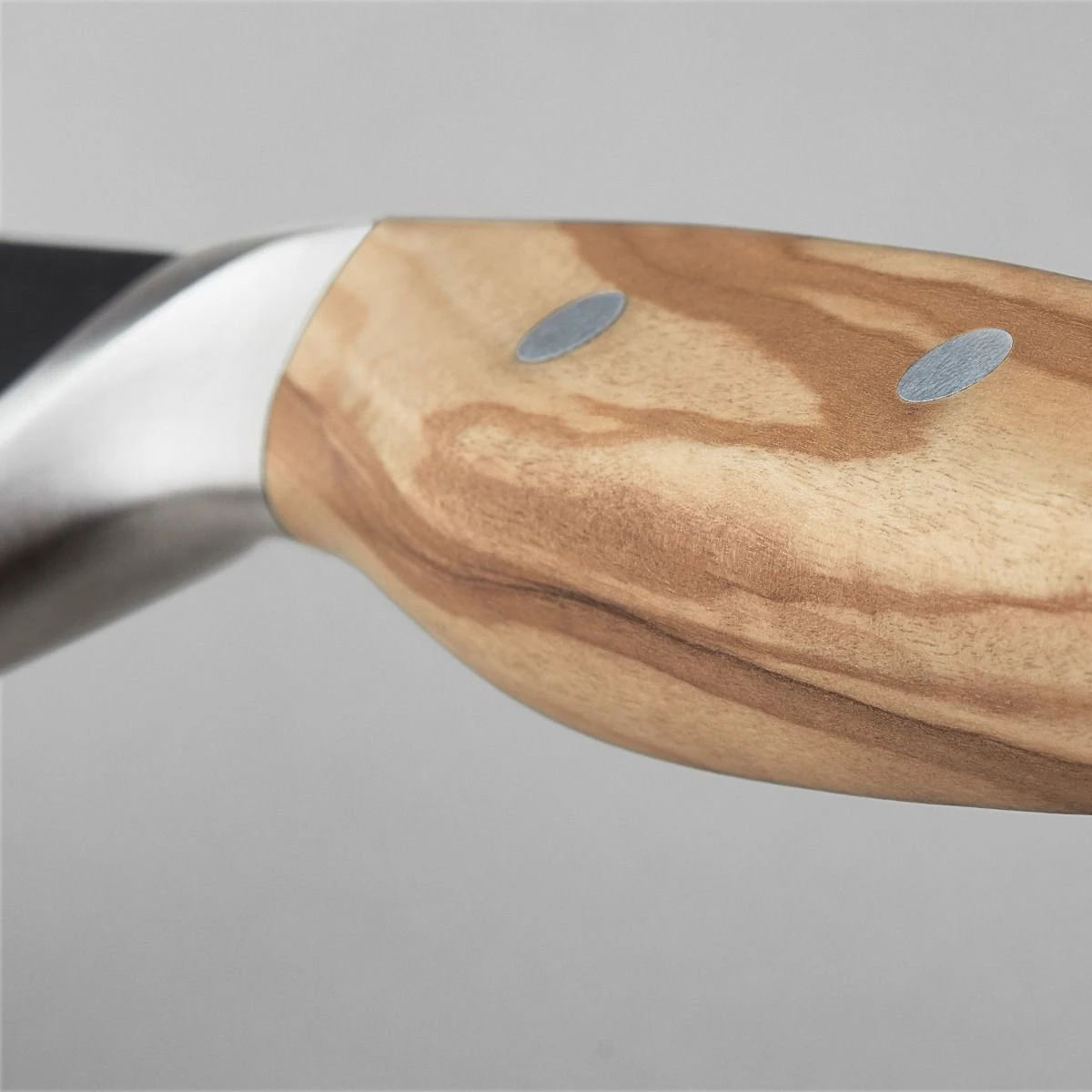 - The handle features Calabrian olive wood construction: water-resistant & antibacterial