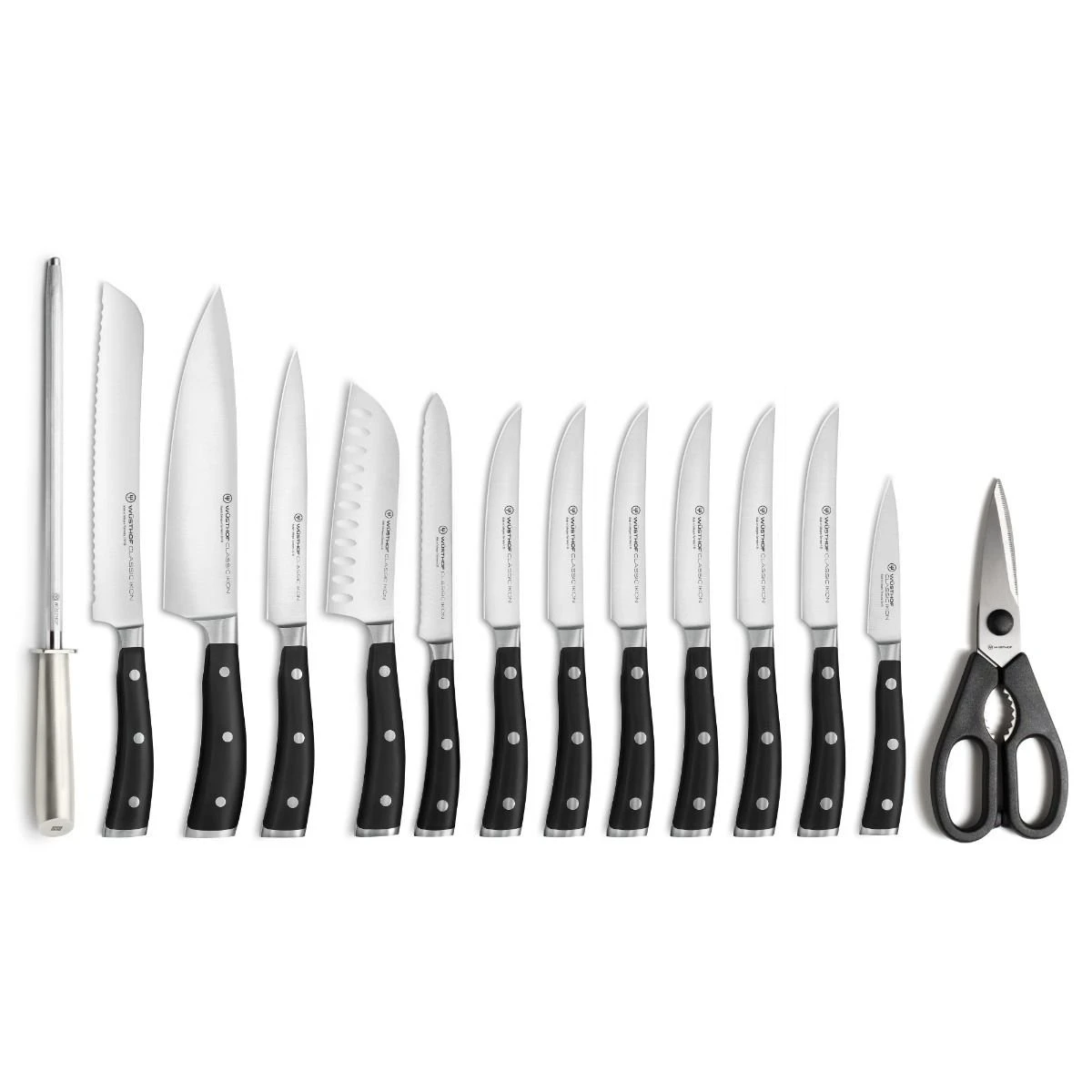 Upgrade your kitchen’s cutting power and versatility today with the Classic IKON 15-Piece Knife Block Set from Wusthof!