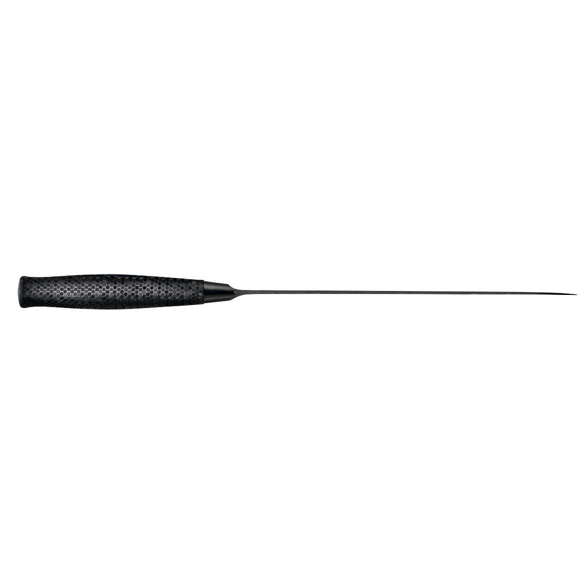 Wusthof is renowned for high-quality German-made knives, and the Wusthof Performer 9″ Double Serrated Bread Knife is no exception. Forged from high-carbon stainless steel, this knife boasts a Rockwell hardness rating of 104 HRC. The diamond-like carbon coating smoothly glides through ingredients of any texture and protects the blade from both scratches and moisture. This bread knife is double serrated, meaning the serrations themselves have serrations on them. This innovative feature allows this knife to effortlessly cut through hard-crusted bread without crushing and soft-crusted bread without tearing. This knife is perfect for any type of bread, cake, or pie. A honeycomb texture makes the ergonomic handle non-slip for comfort and control. This knife is equipped with a full bolster and finger guard to protect your hands and provide balance. The elegant black finish makes this knife an attractive addition to your knife collection. The heat-resistant blade is nonstick and frictionless, preventing food, fats, and acids from sticking to the knife and making cleanup effortless. This knife is dishwasher-safe, but handwashing is recommended for longevity. Whether you’re cutting into a crisp baguette, a soft cake, or a flaky pie, you’ll always find yourself reaching for the Wusthof Performer 9″ Double Serrated Bread Knife!